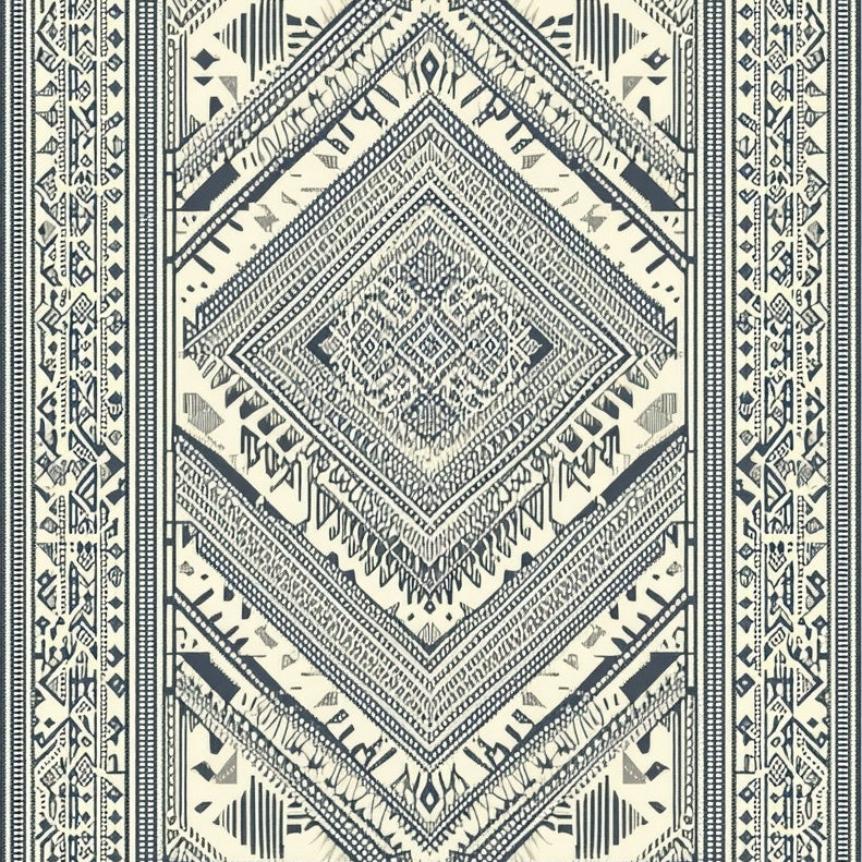 Geometric Dark Gray & Cream Modern Boho Design Diamond Motif(Gray)