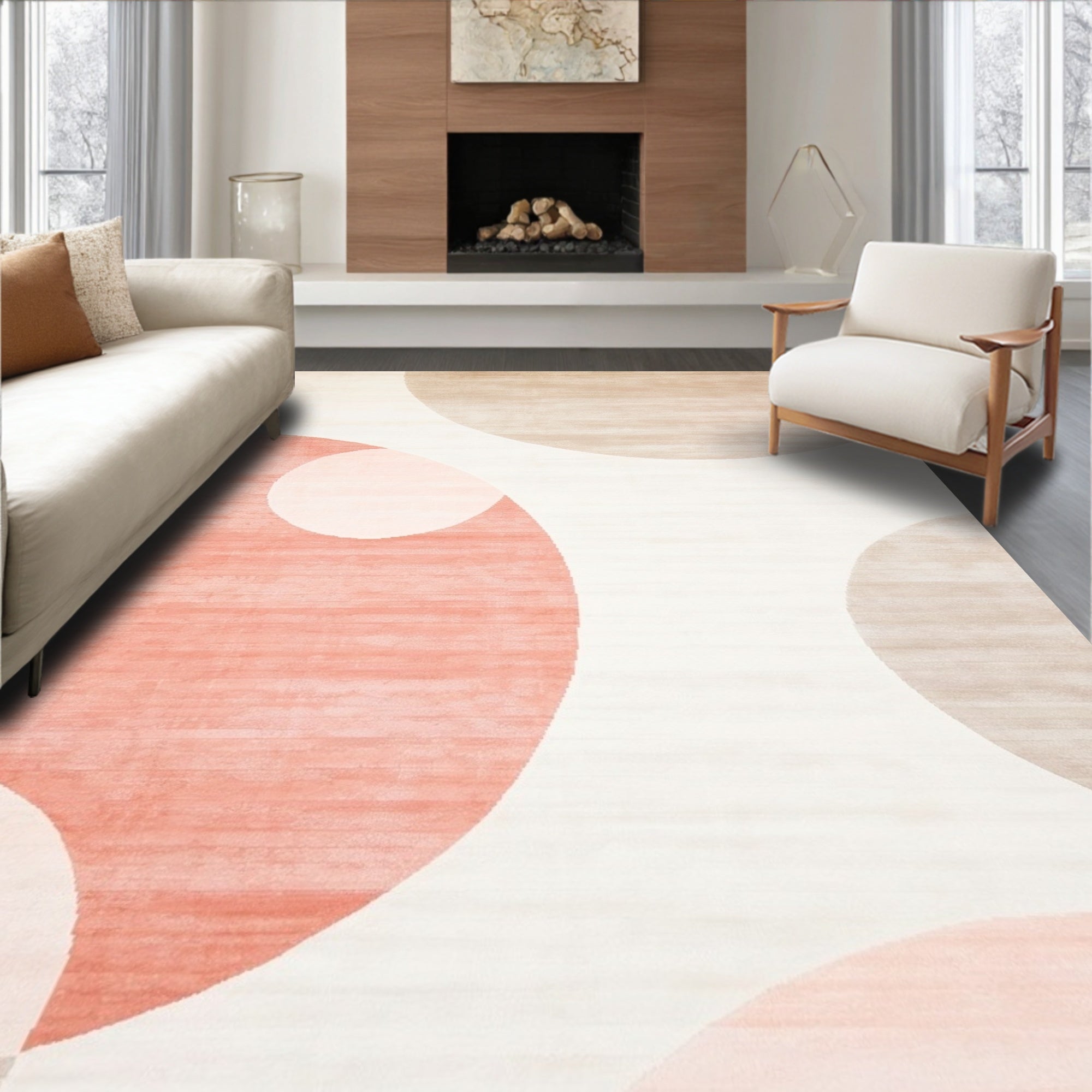 Geometric Circle Area Modern Design(Beige)