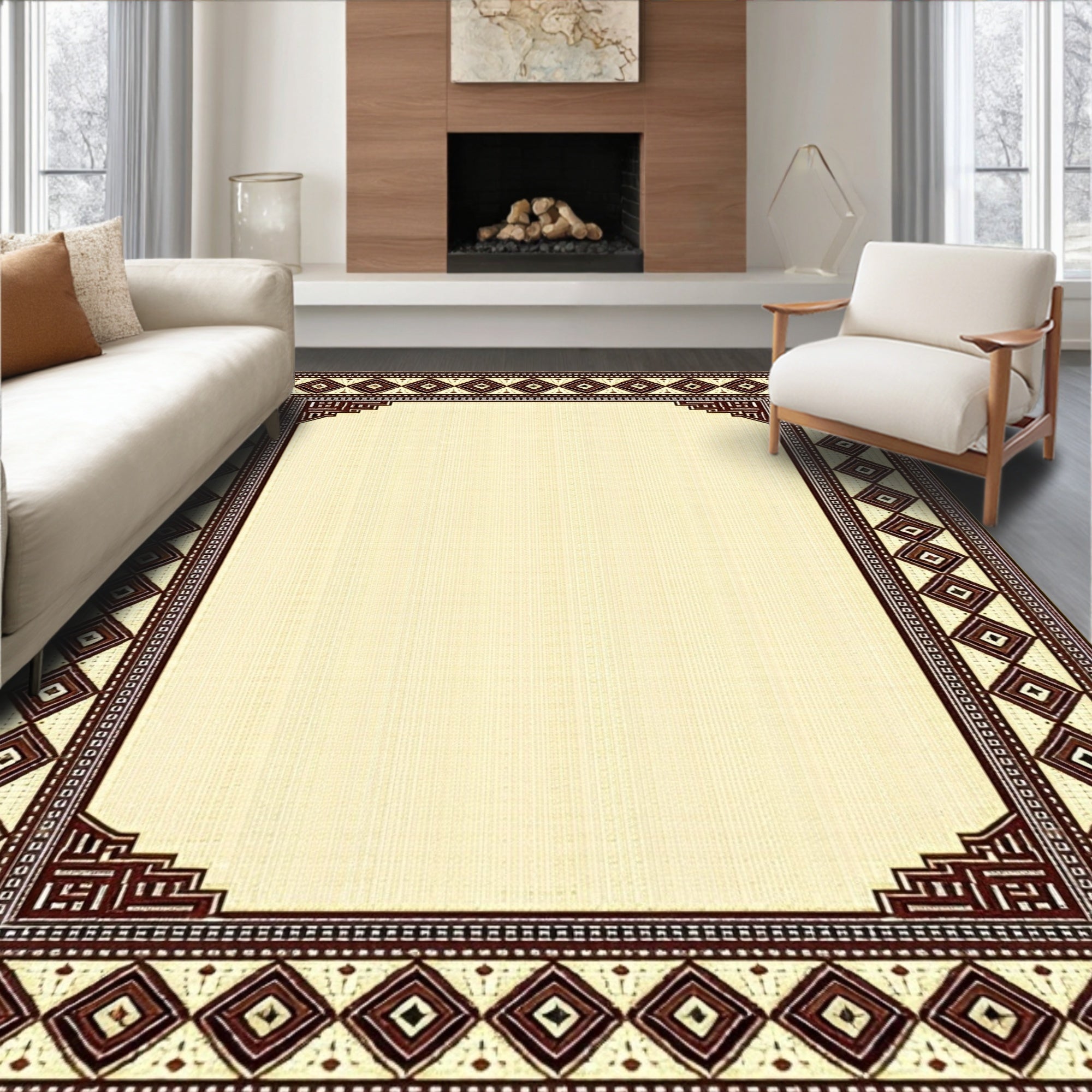 Geometric Brown and Beige Modern Border Area(Beige)