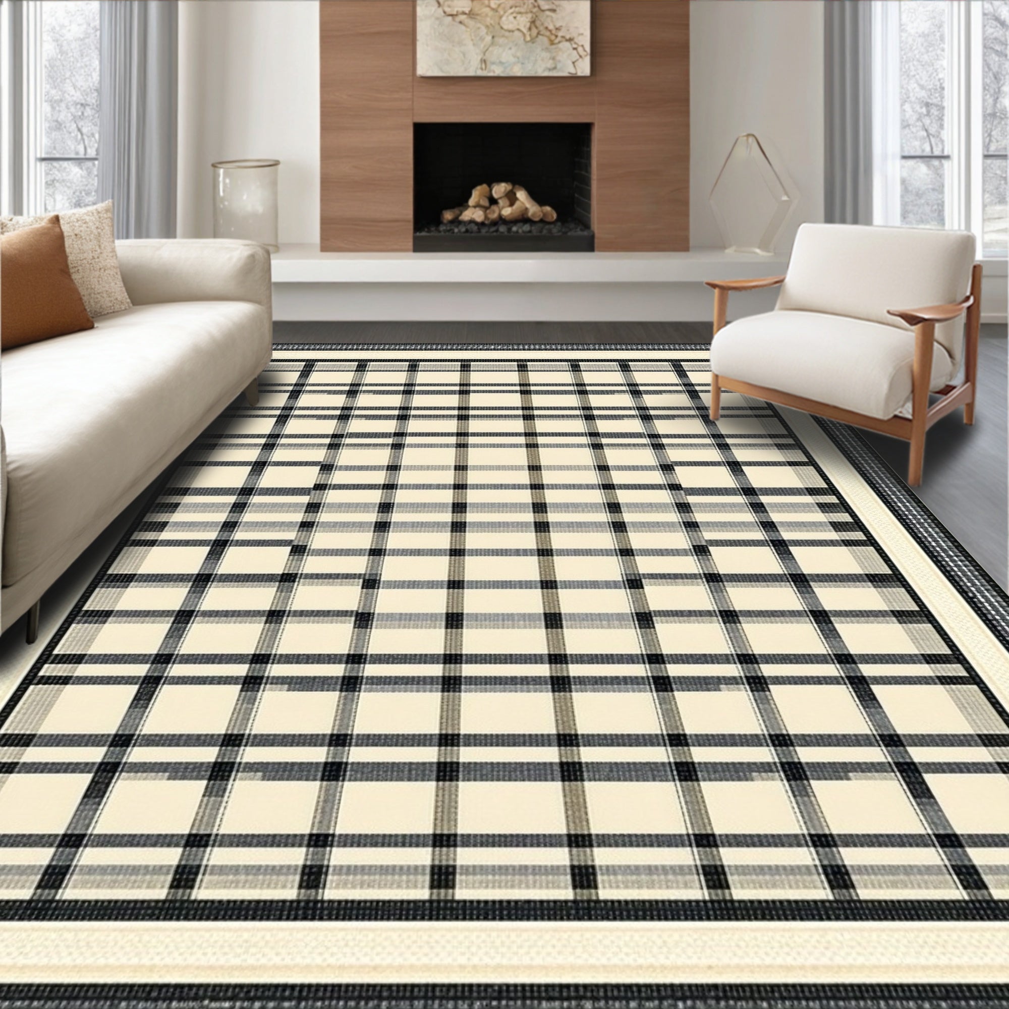 Geometric Buffalo Check Area in Ivory Beige and Cream(Beige)