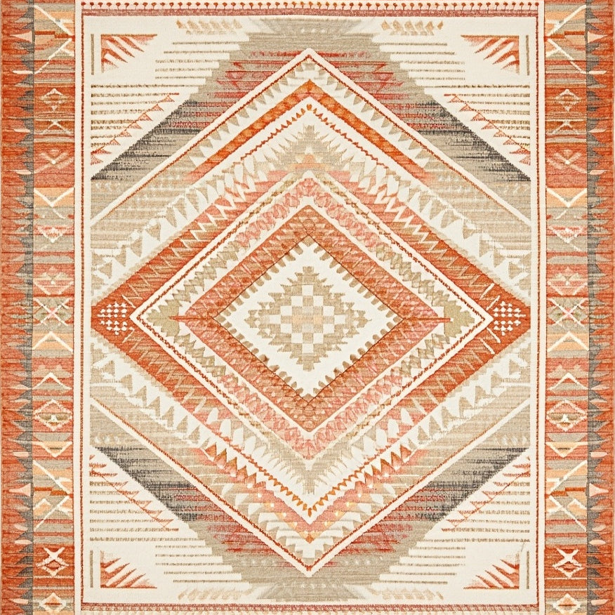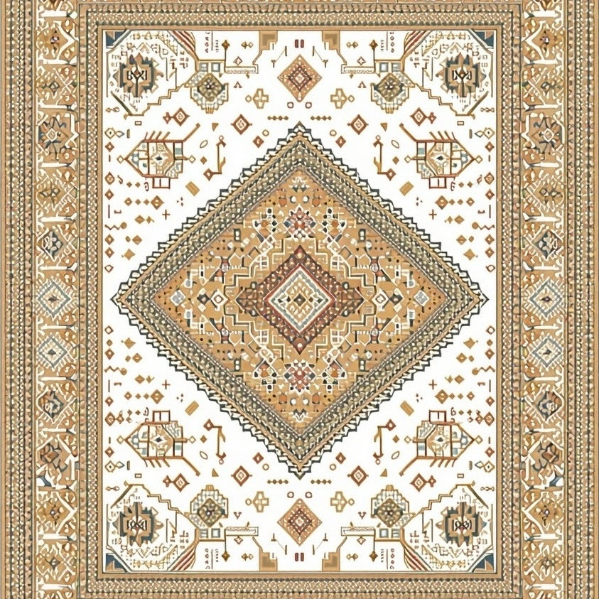 Geometric Diamond Medallion Area Earthy Toned Centerpiece(White)