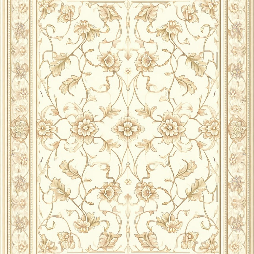 Heritage Garden Area Showcasing Baroque Floral and Leafy Arabesque(Beige)