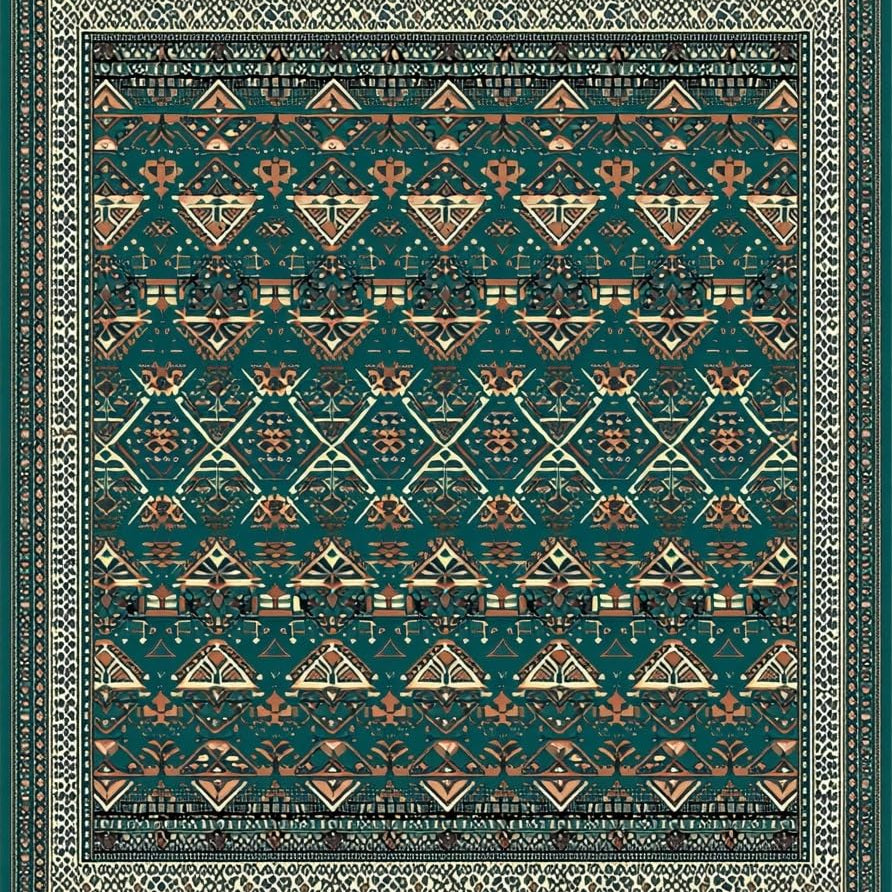 Intricate Geometric Design Area with Teal and Copper Accents(Blue)
