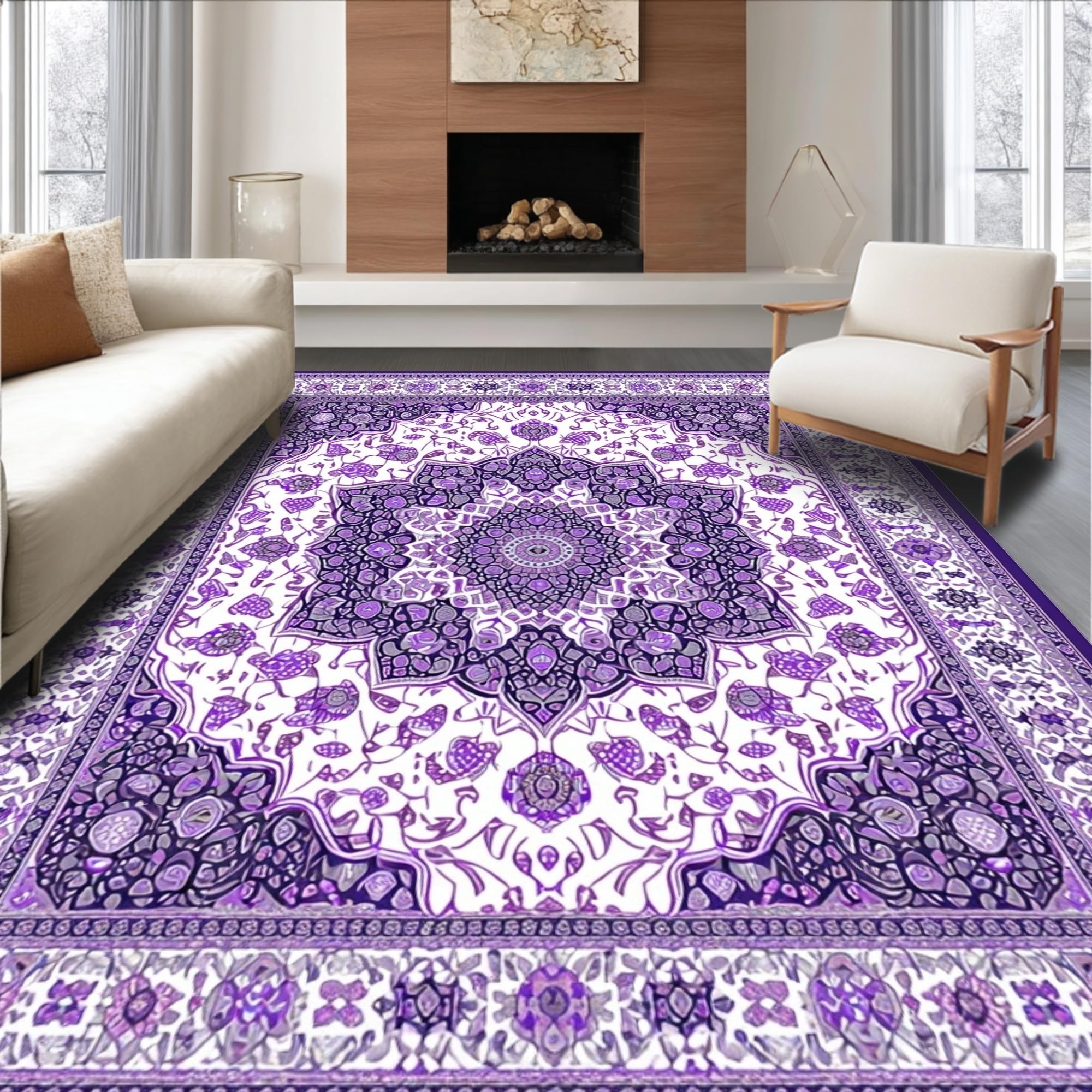 Intricate Geometric Floral Area with Smoke and Beige Motifs(Beige)