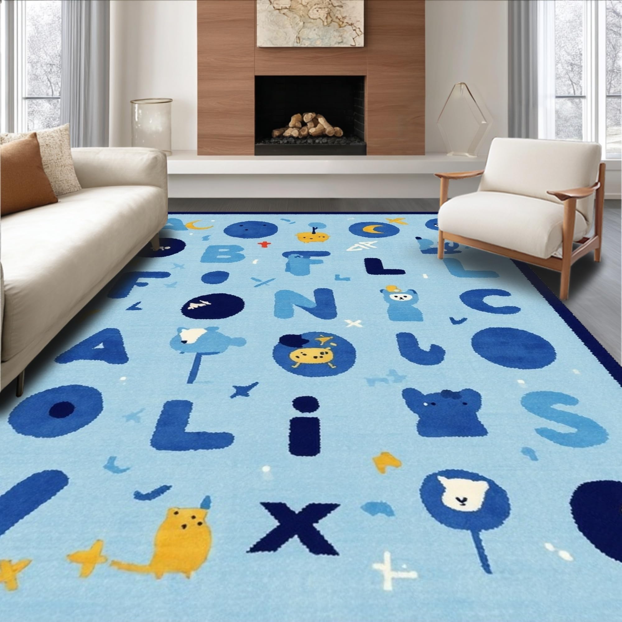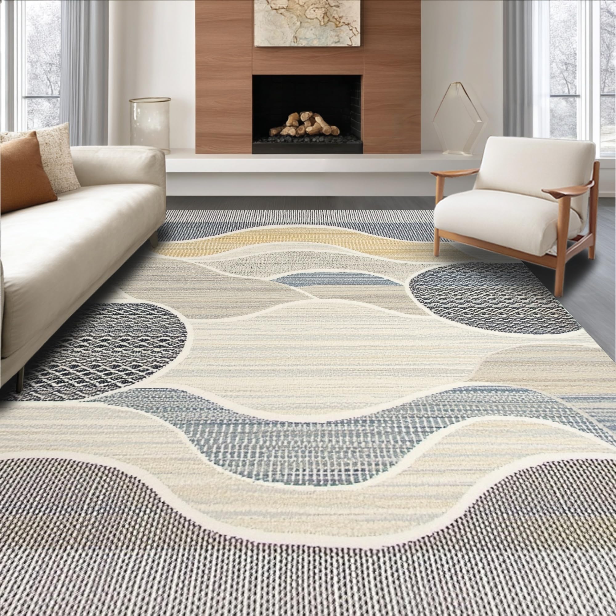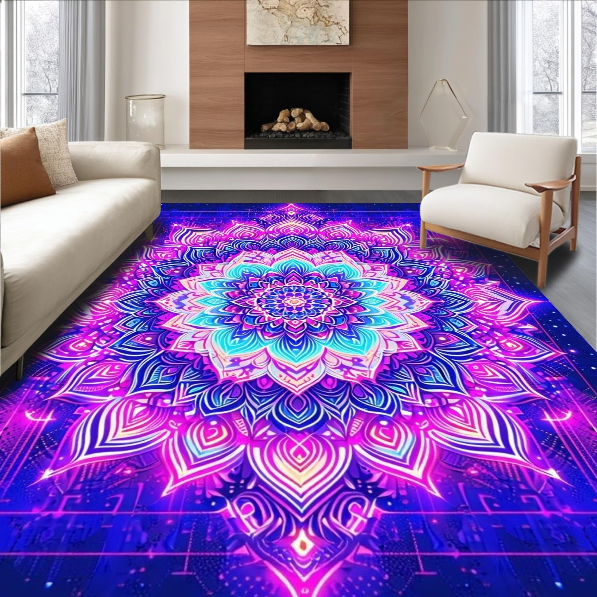 Intricate Woven Area Featuring Complex Design and Gold Accents(Blue)