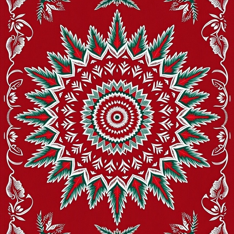 Intricate Winter Starburst with Frosted Ferns and Twinkling Berry Clusters(Red)