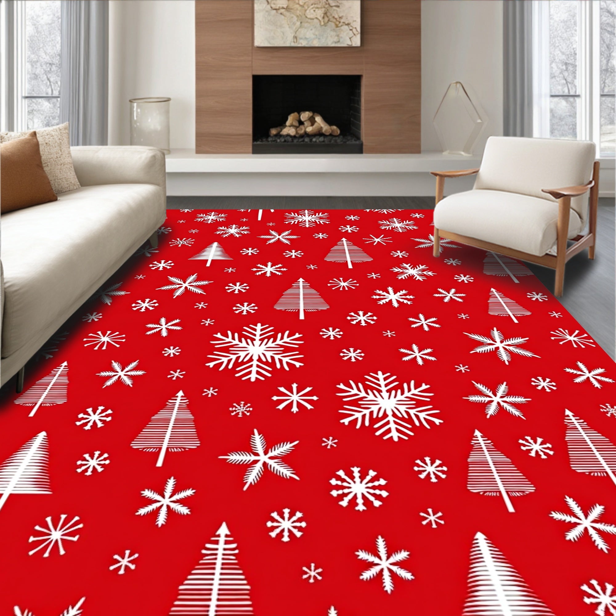 Joyful Yuletide Decorative Floor Covering(Red)