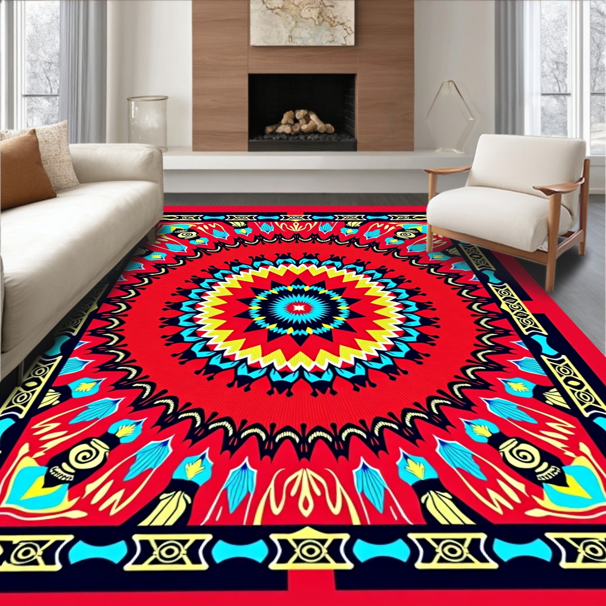 Joyous Multicultural Winter Holiday Celebration Floor Covering(Red)