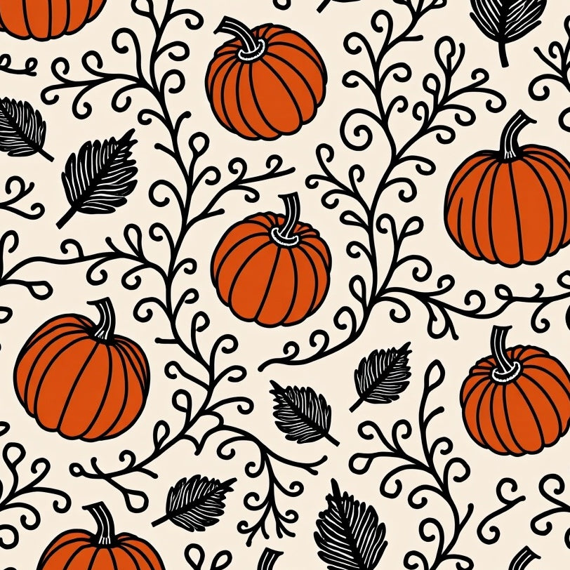 Harvest Vine Scrollwork with Stylized Maple Motifs and Ornate Baroque Flourish(Orange)