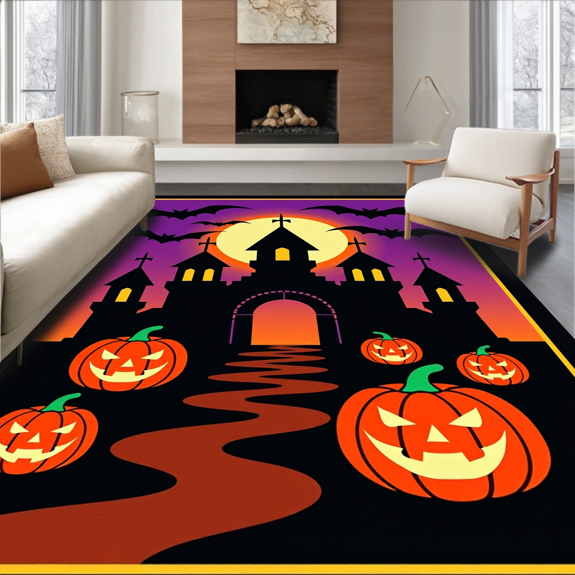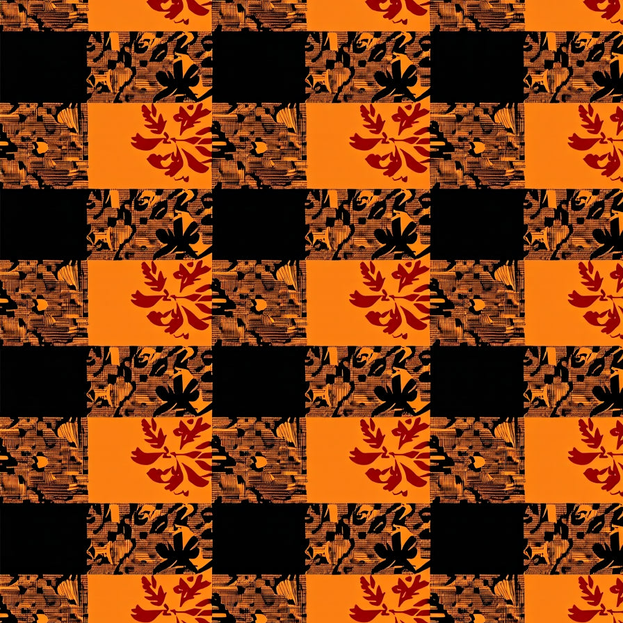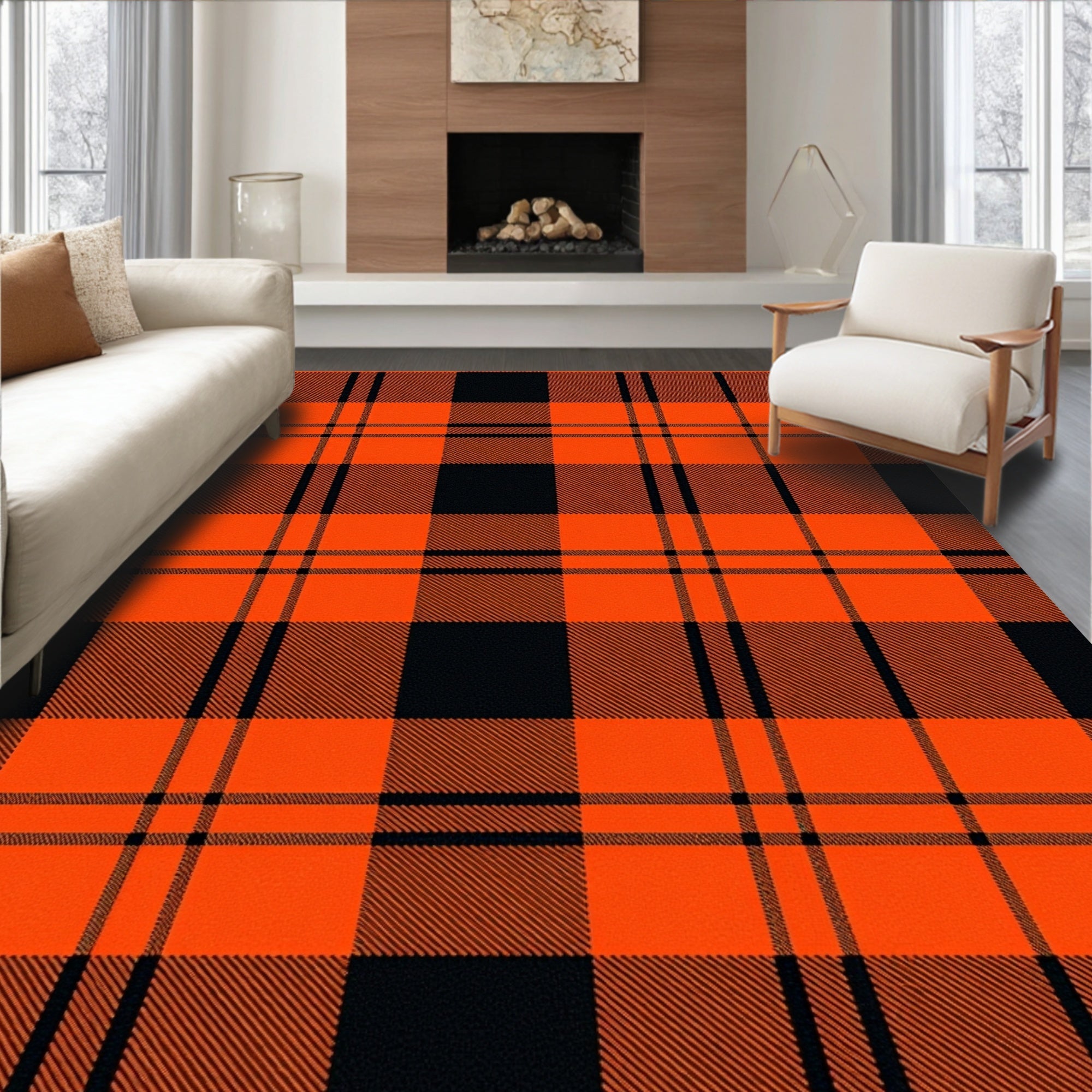 Haunted Buffalo Check Floor with Seasonal Fall Decorations(Orange)