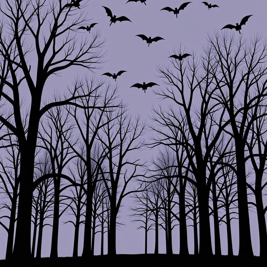 Haunted Forest with Shadowy Bats and Gnarled Trees(Purple)
