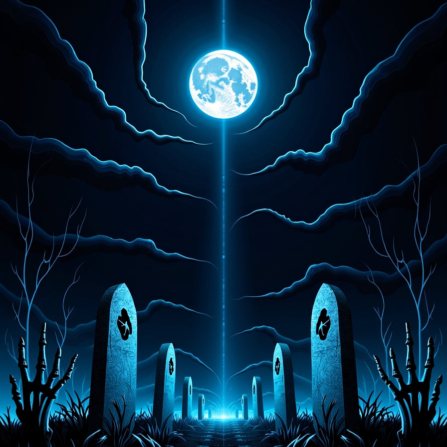 Haunted Graveyard Moonlit Spiral Swirl Decorative Floor Covering(Blue)