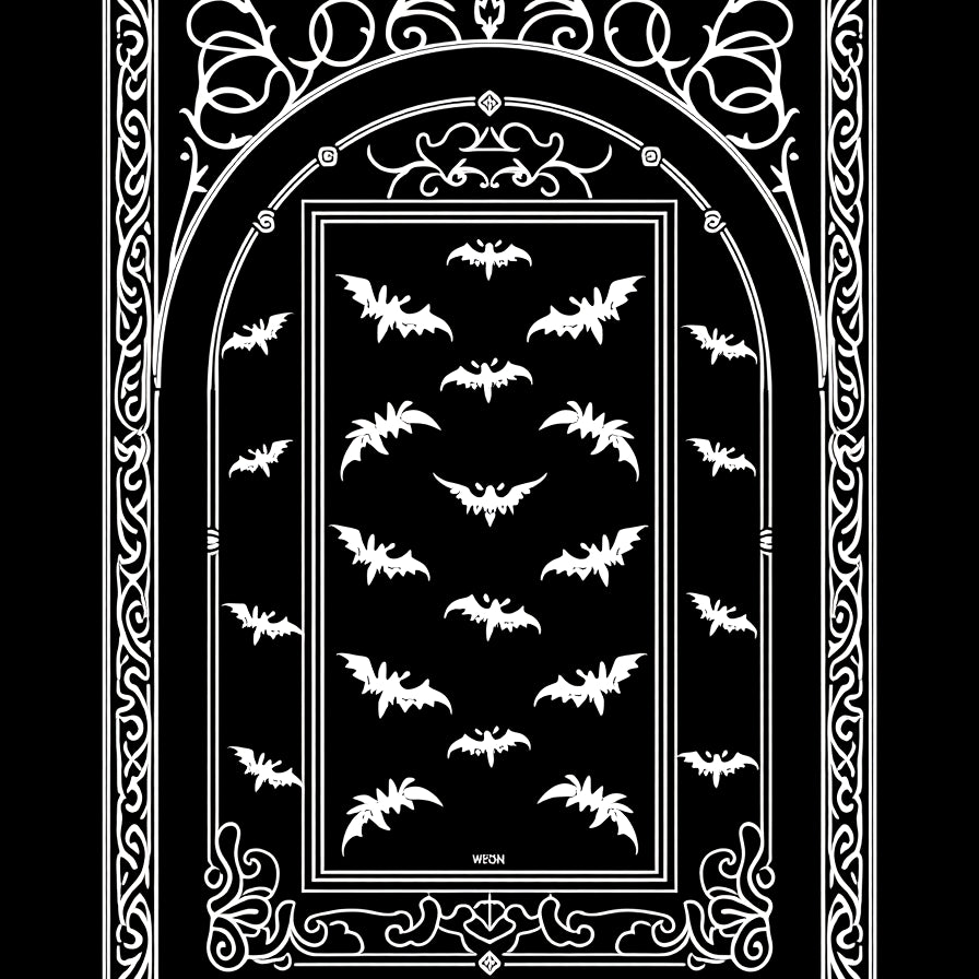 Haunted Gothic Archway with Interlocking Bats and Vintage Baroque Scrollwork(Black)