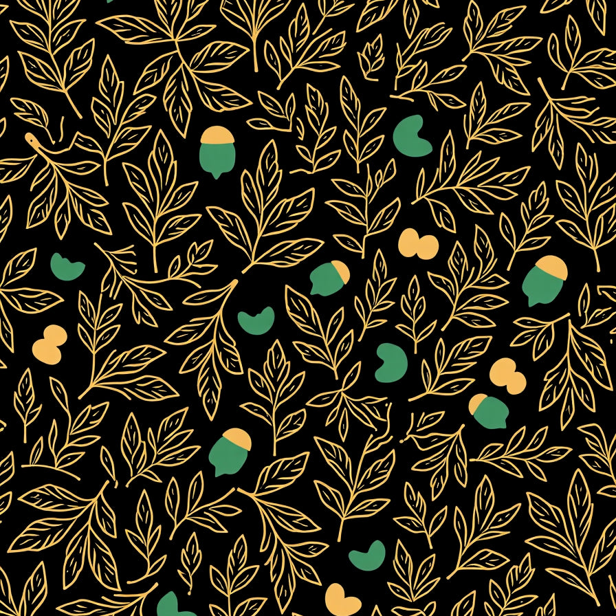 Harvest Woodland Path with Maple Branches and Classic Forest Icons(Black)