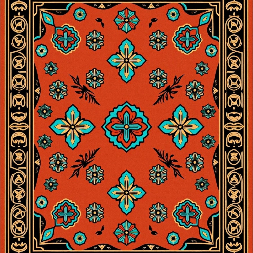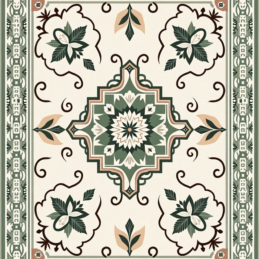 Heritage Medallion with Symmetrical Floral Motifs and Geometric Edges(Dark Green)