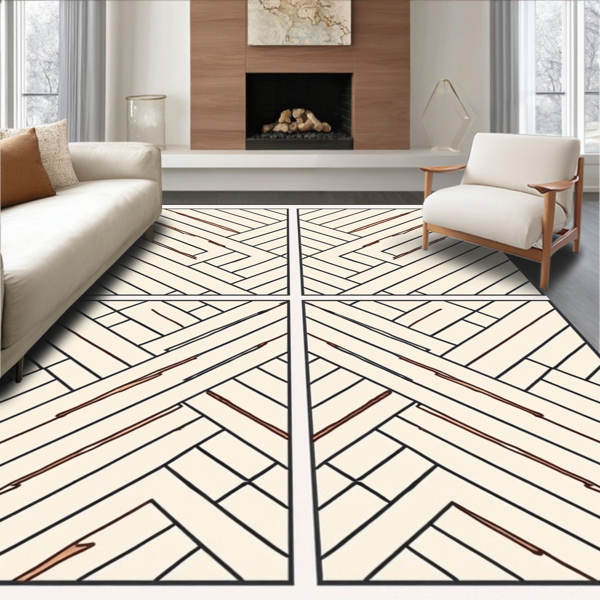 Heritage Latticework Motif Featuring Interlocking Lines and Minimalist Accents(Ivory)