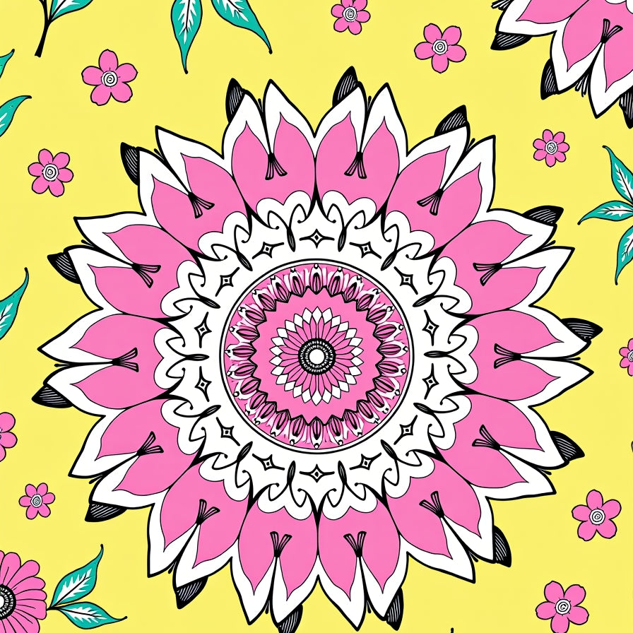 Inspired Symmetrical Botanical Motif with Petal Details(Yellow)