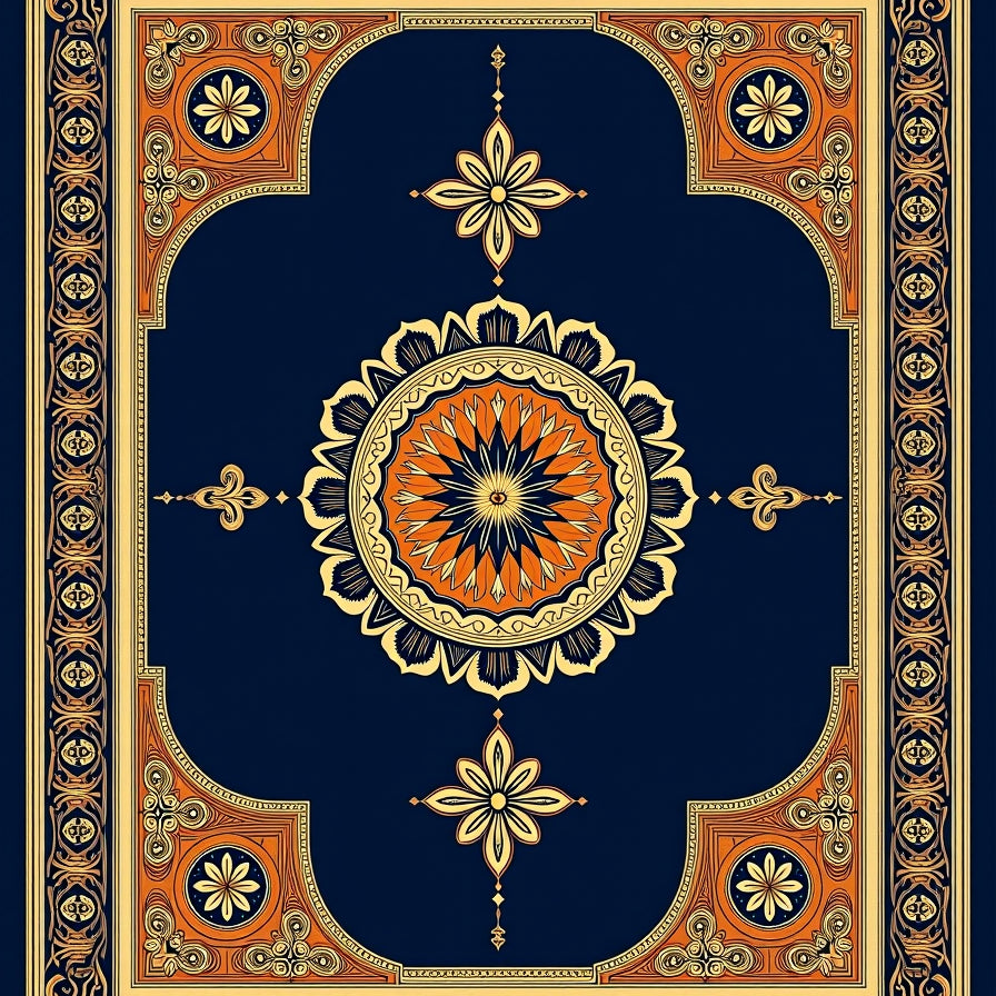 Inspired Medallion with Ornate Central Focal Points(Blue)