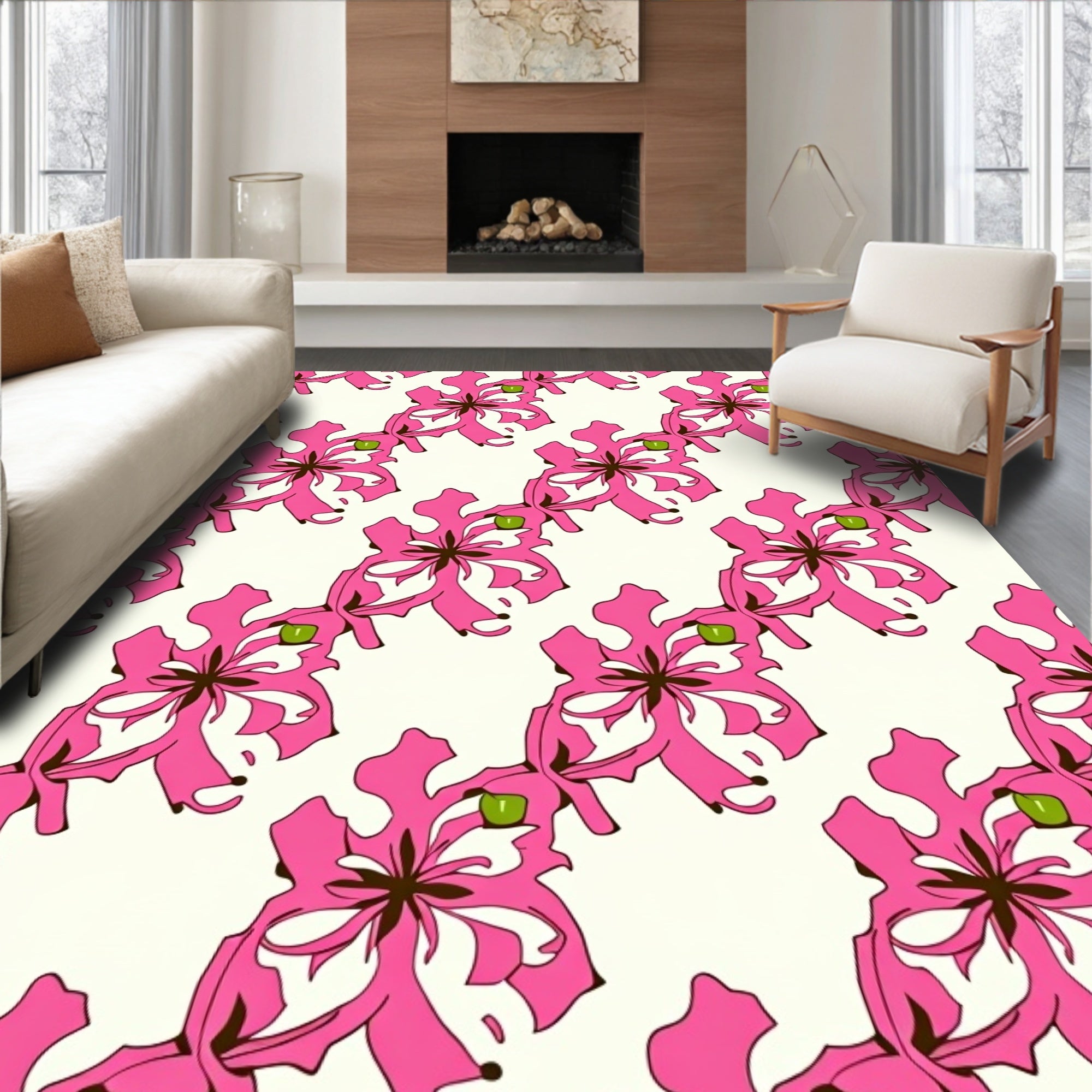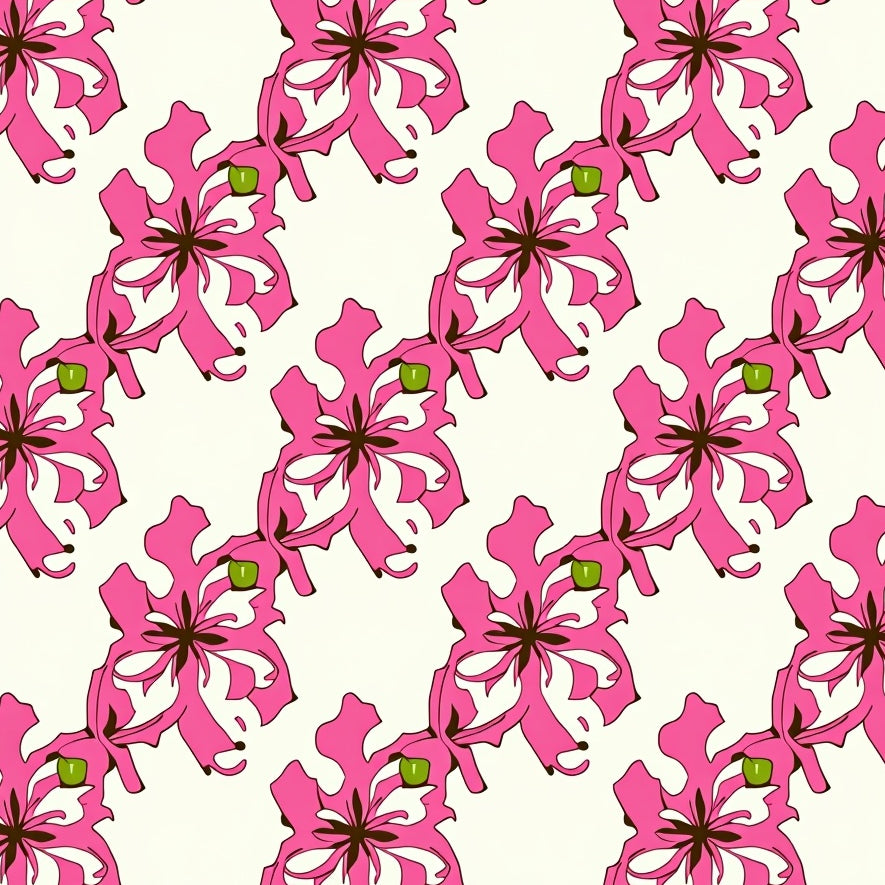 Interlocking Grid Featuring Stylized Botanical(Pink)