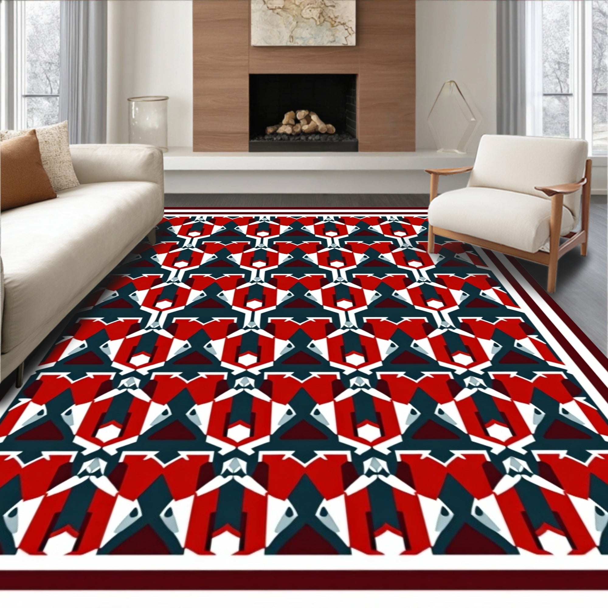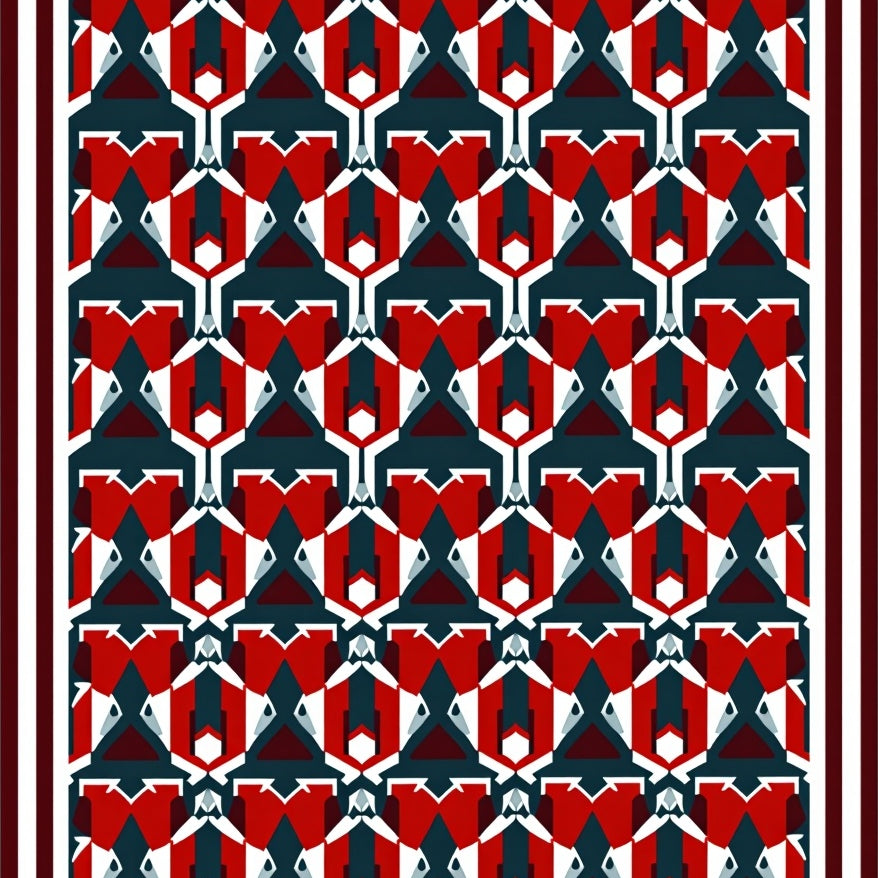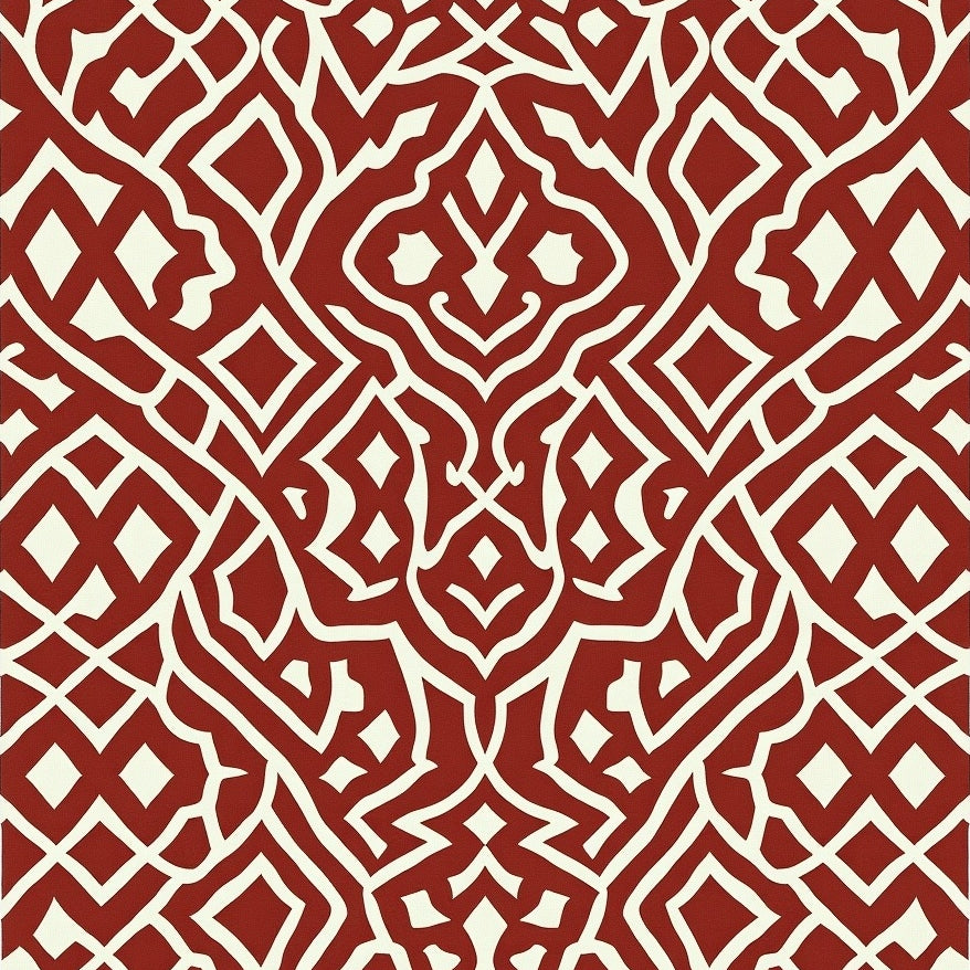 Interlocking Chevron Mosaic with Elegant Symmetrical Stripes and Curves(Red)