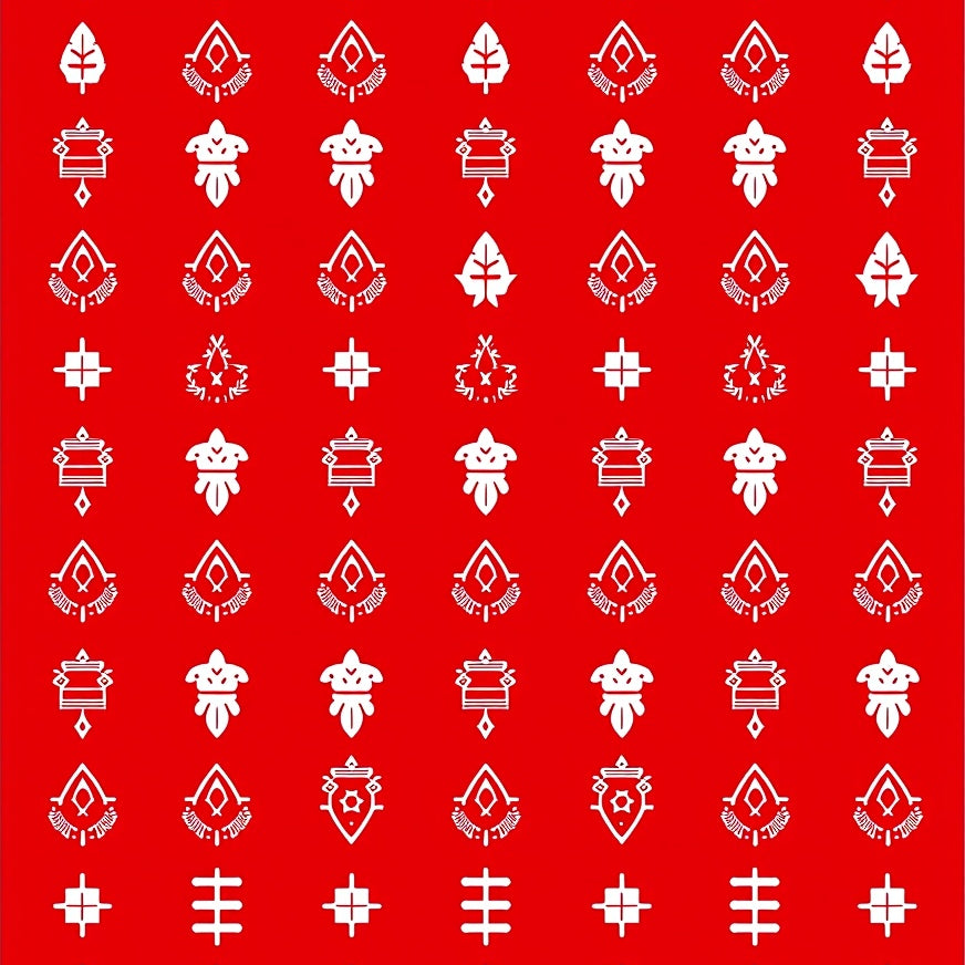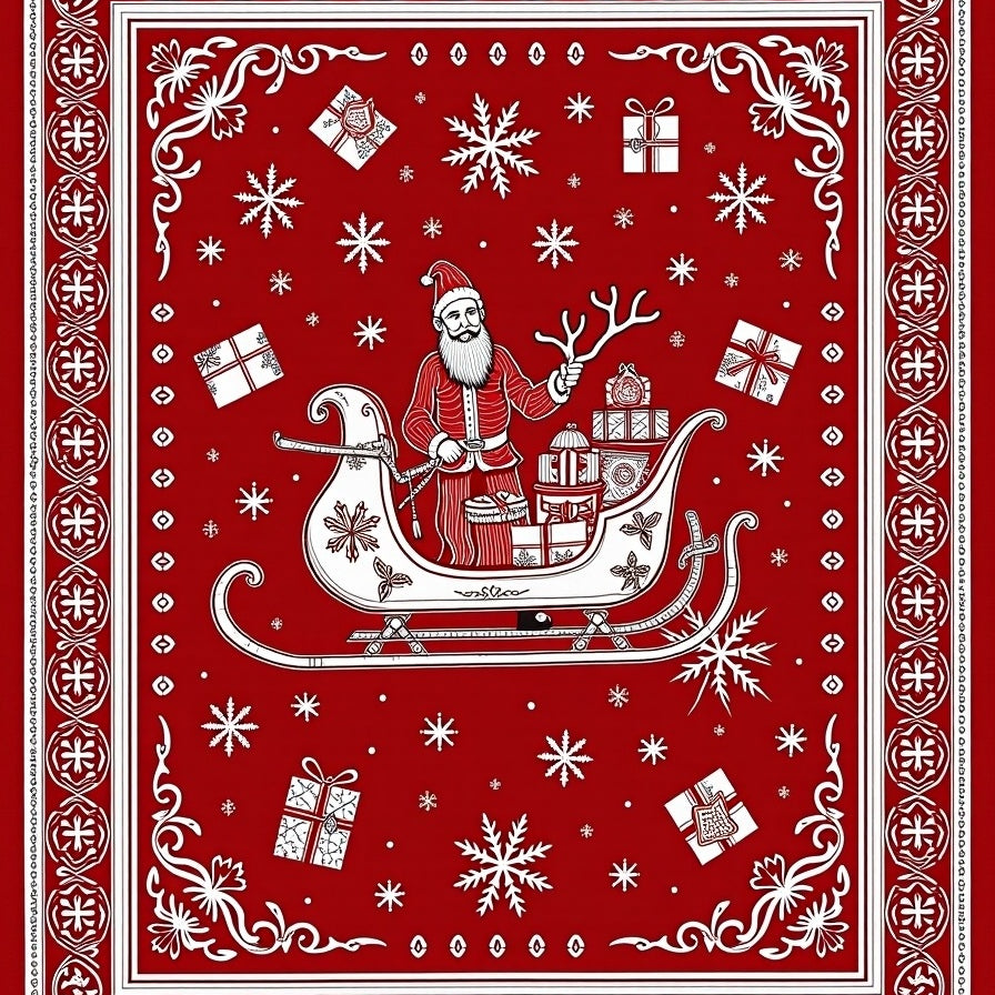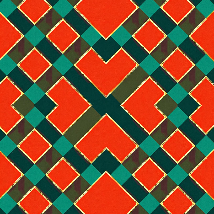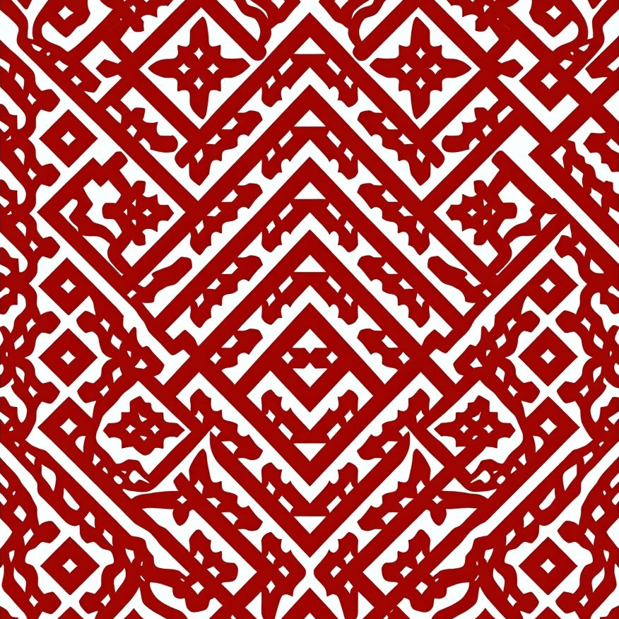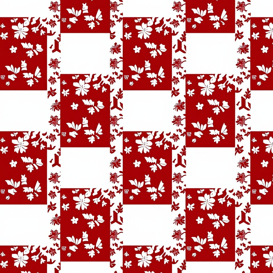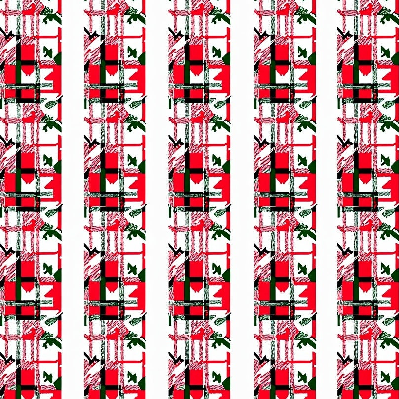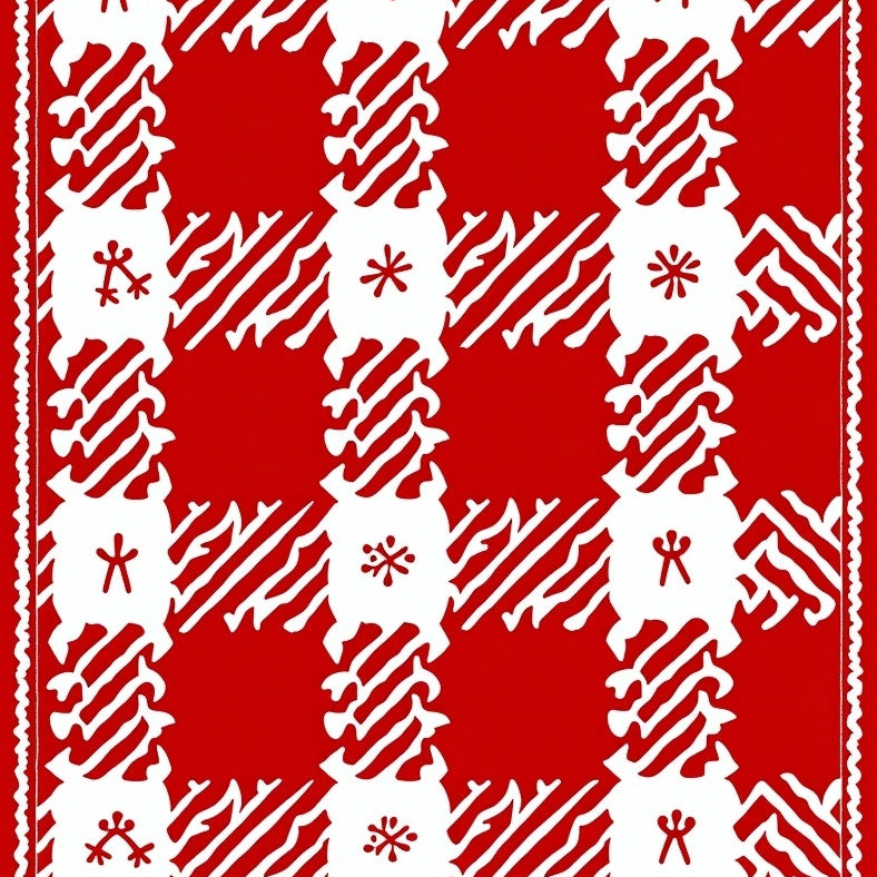 Merry Mosaic with Interwoven Plaid and Stylized Holiday Symbols(Red)