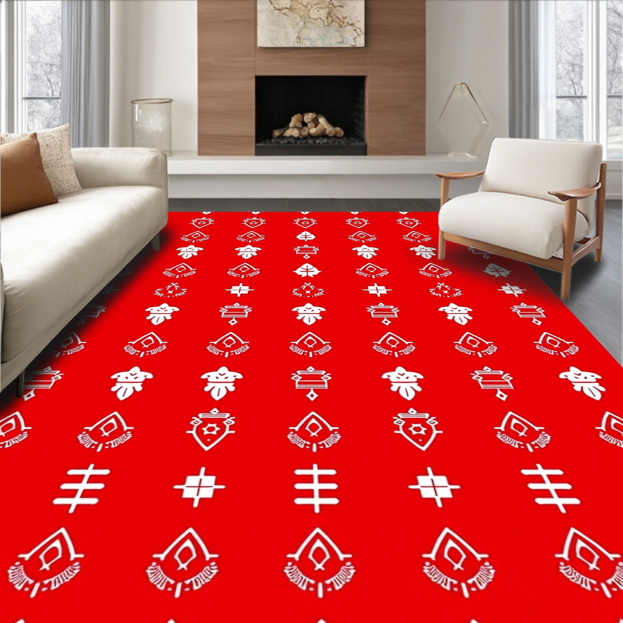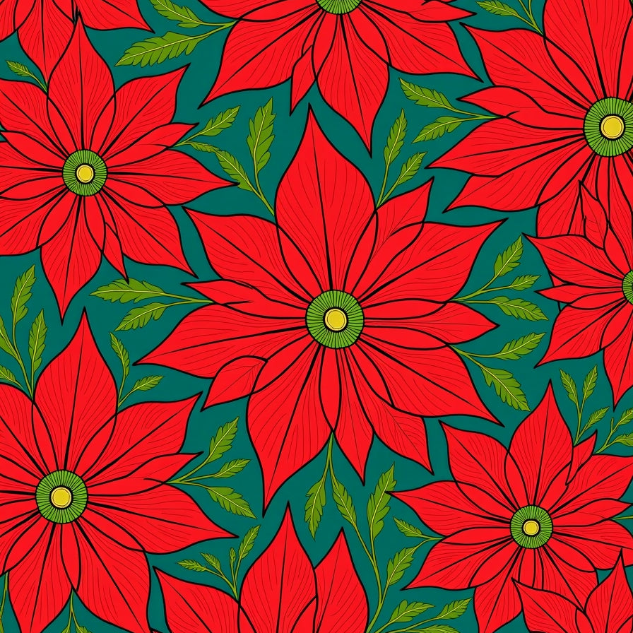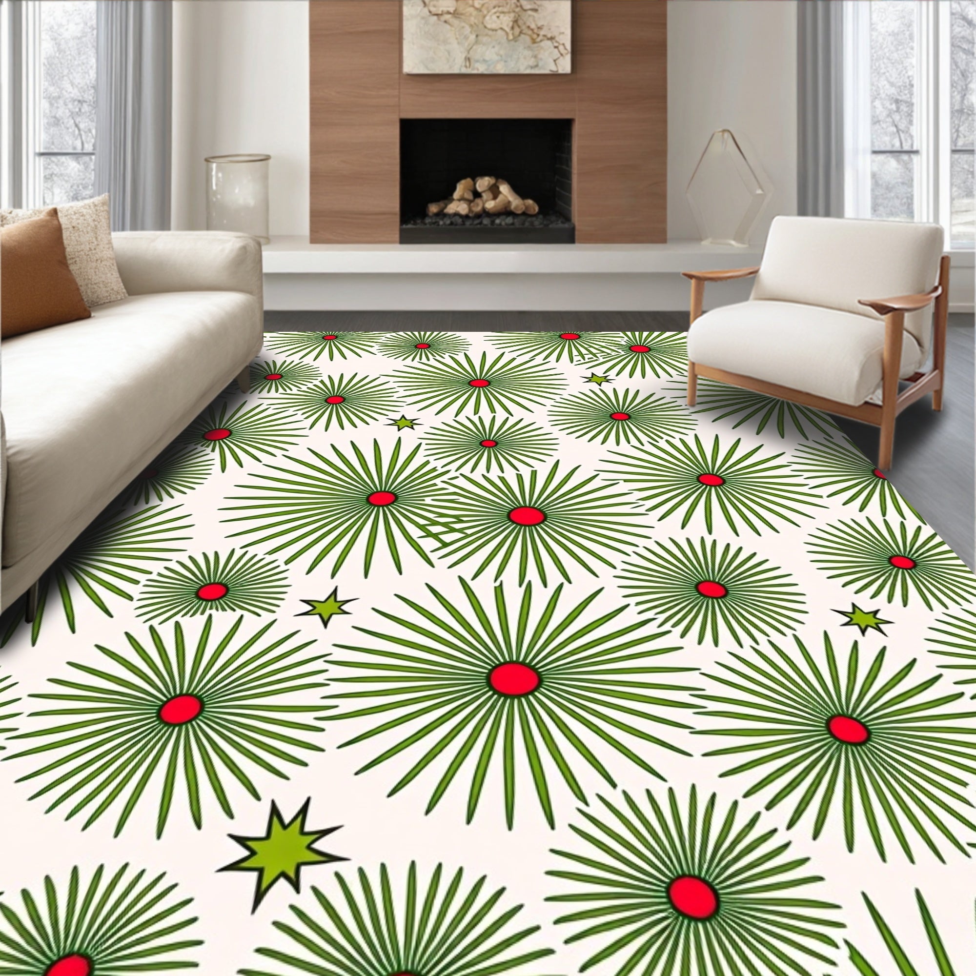 Merry Poinsettia Bloom Floor Covering with Holly Accents(Red)