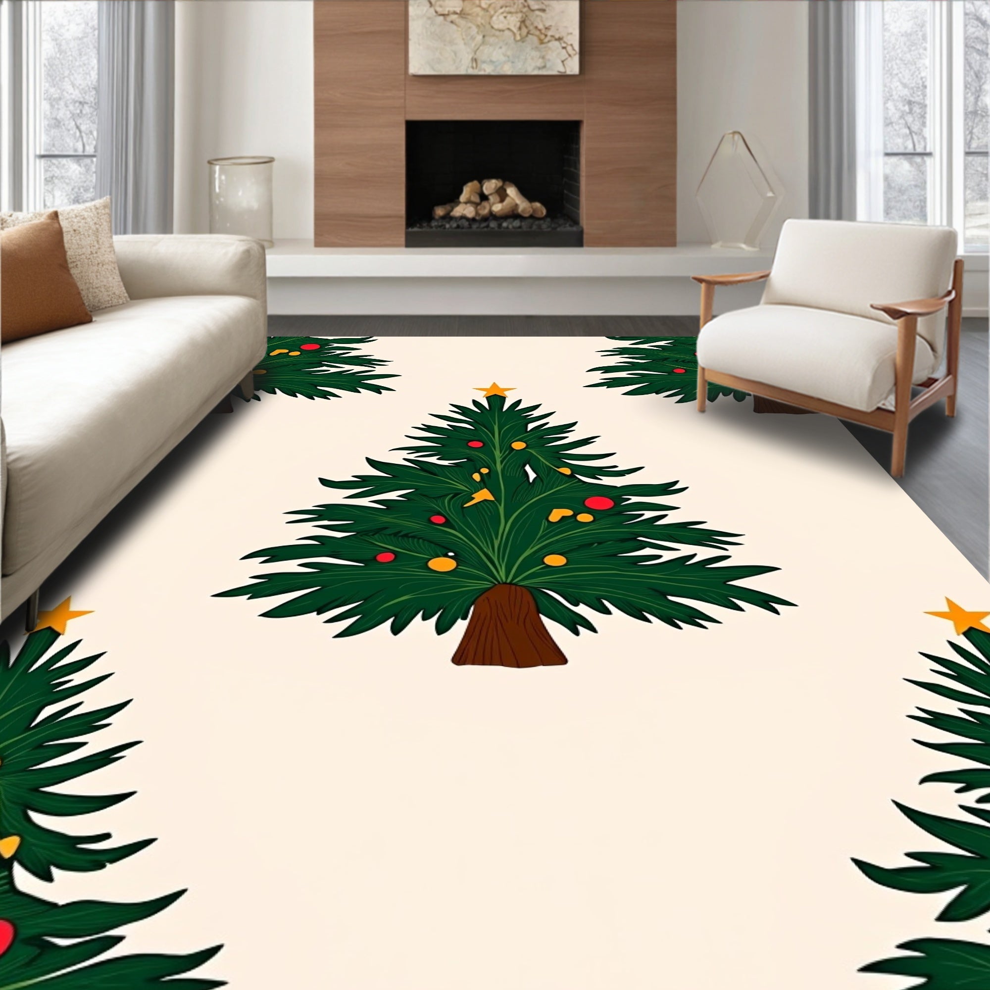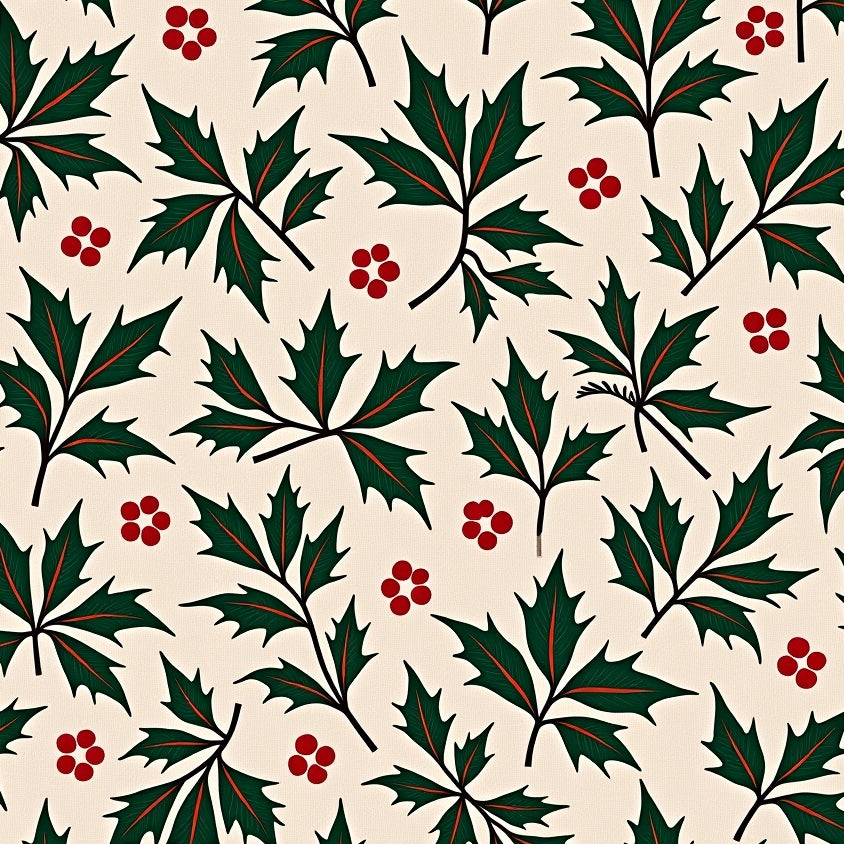 Merry Holly Berry Botanical Christmas Floor Covering with Leaf Accents(Ivory)