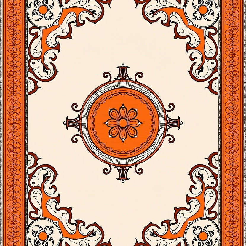 Intricate Medallion Panel with Interlocking Trellis and Classic Scrollwork(Orange)