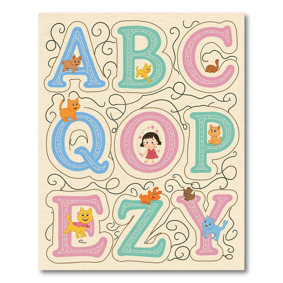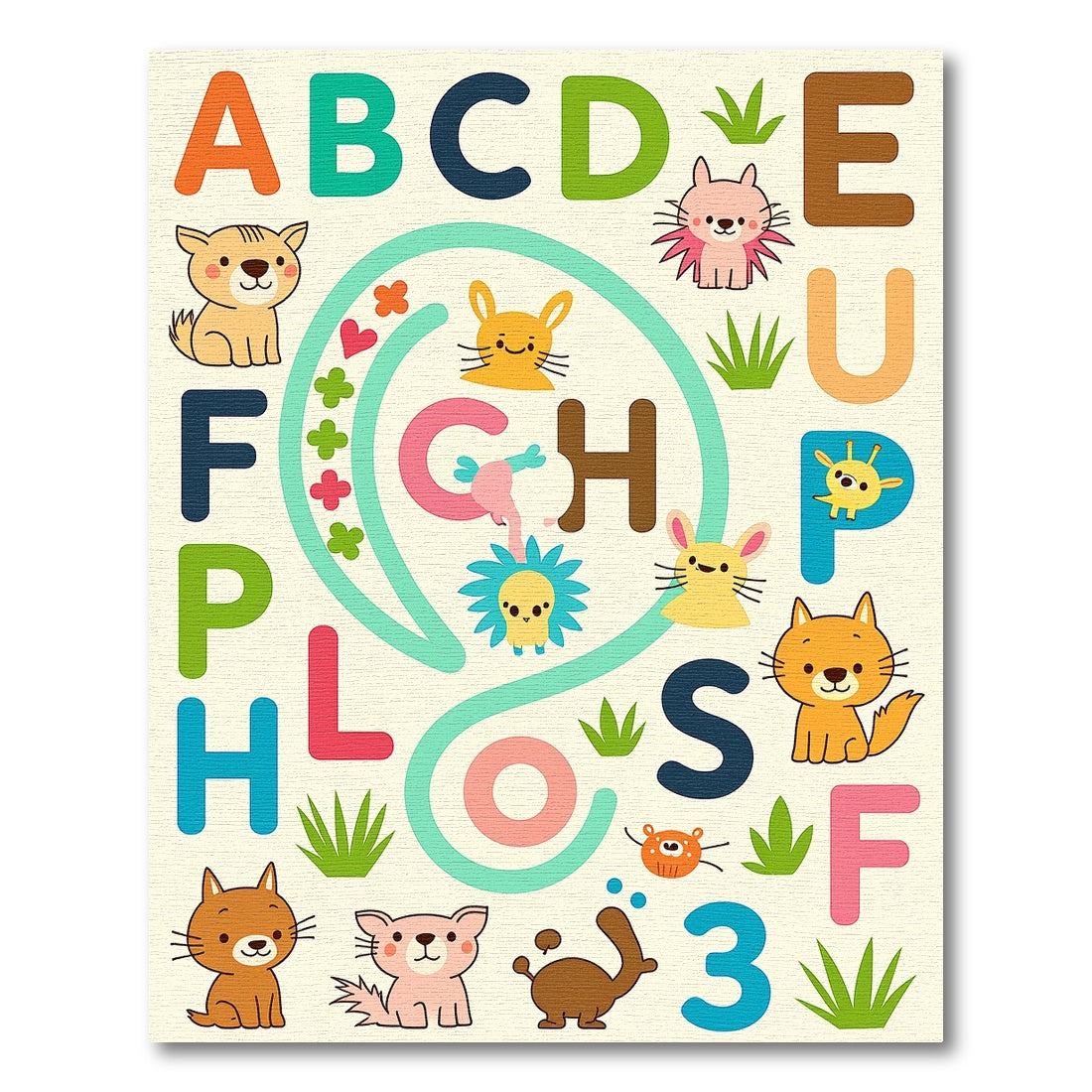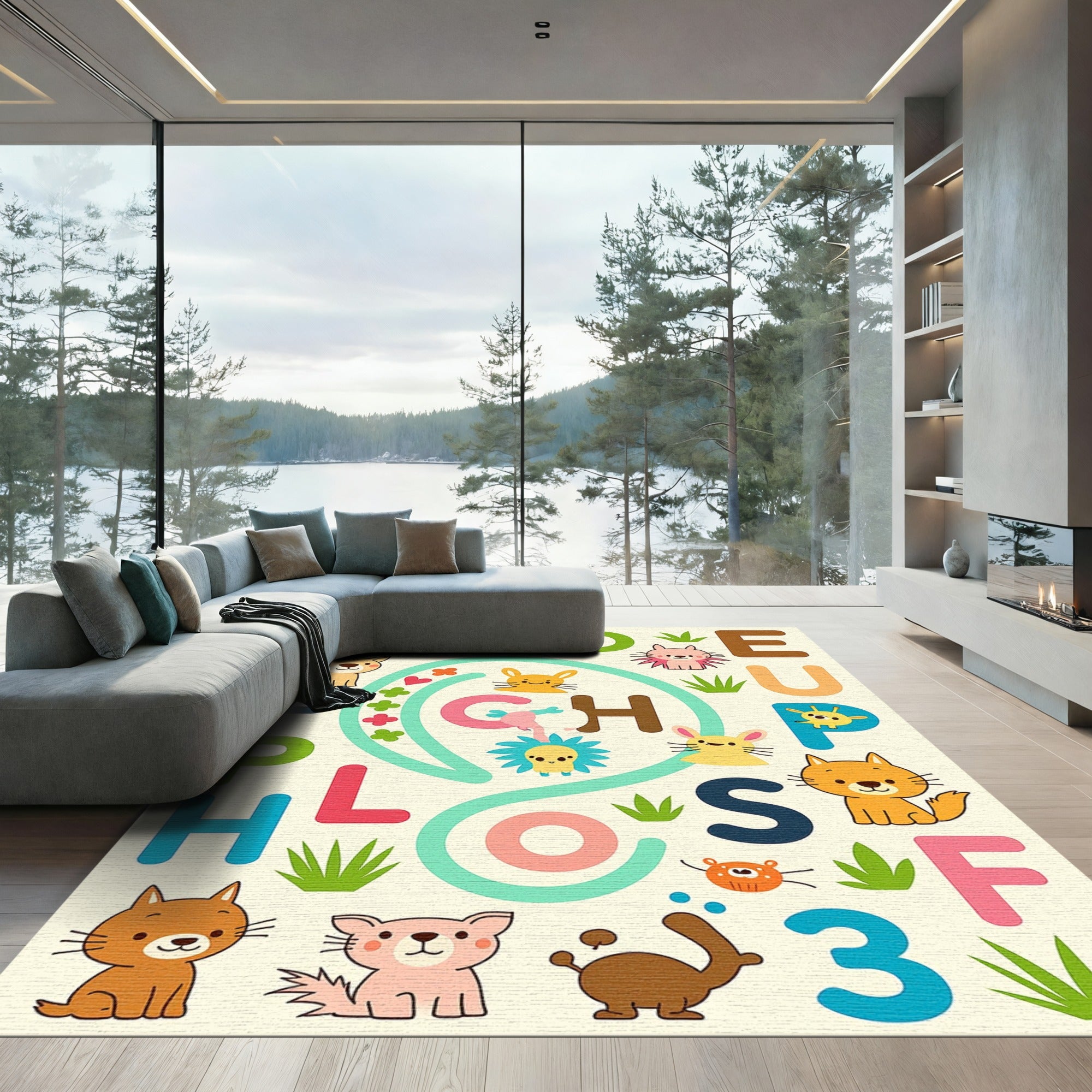 Cute Alphabet Animals Playful Composition Rug