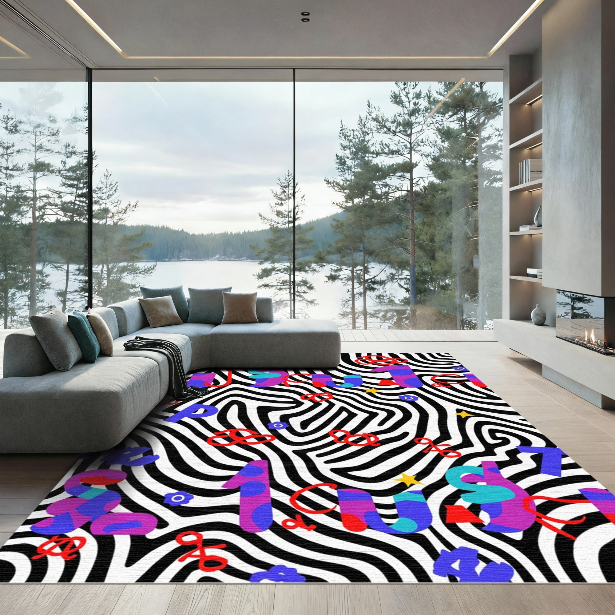 Abstract Animal Print Bold Funky Letters Rug