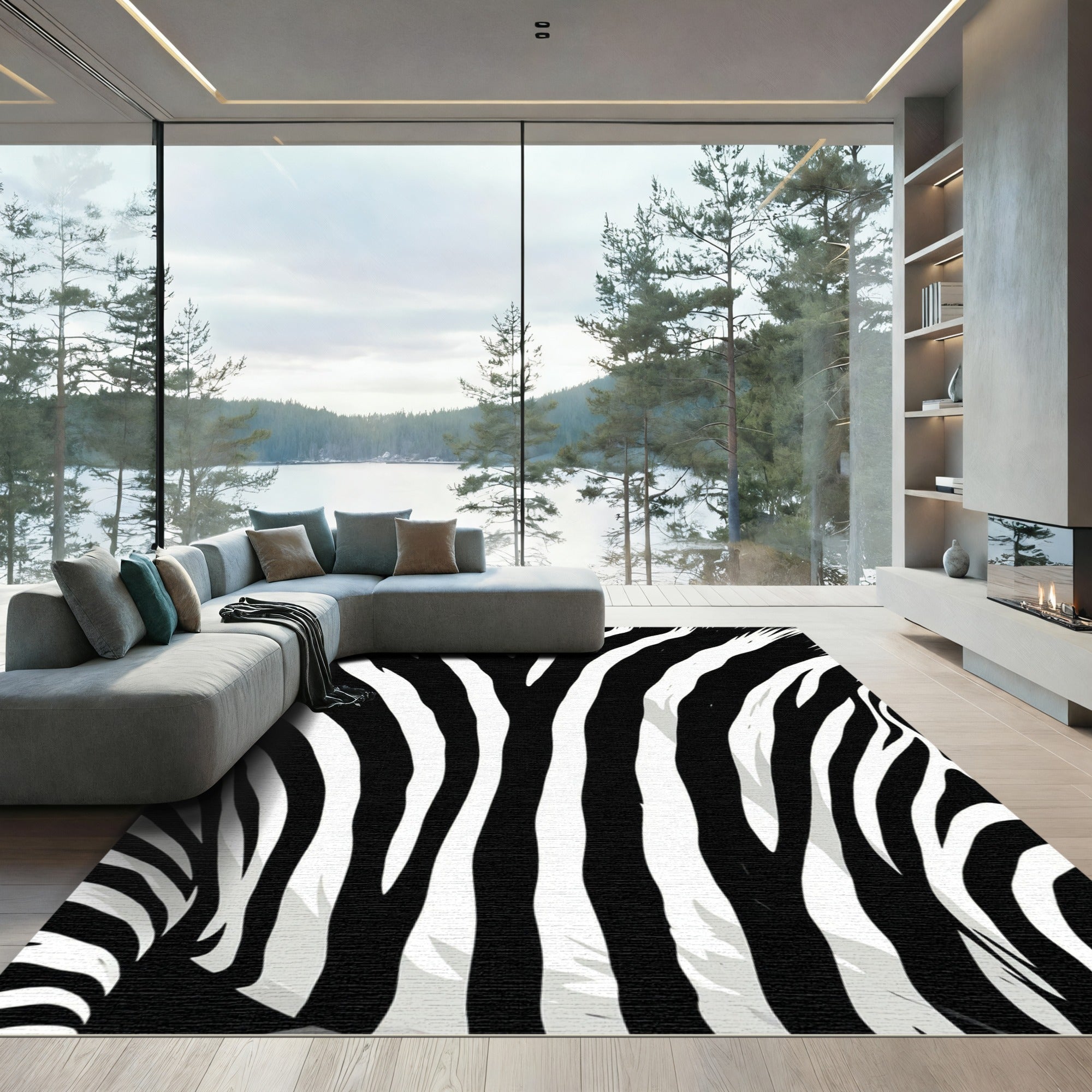 Black White Irregular Animal Print Rug