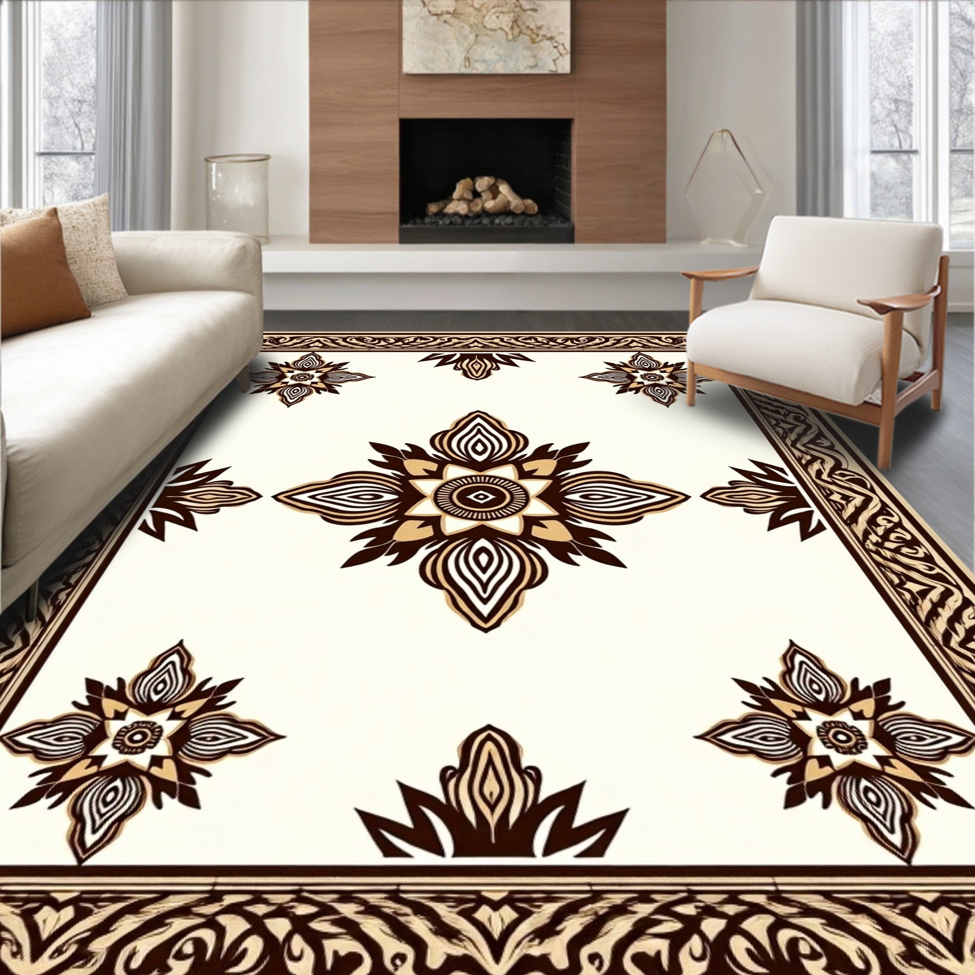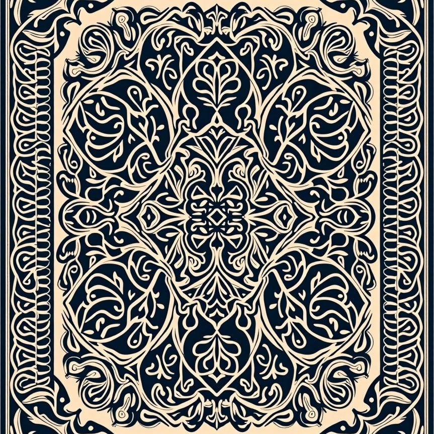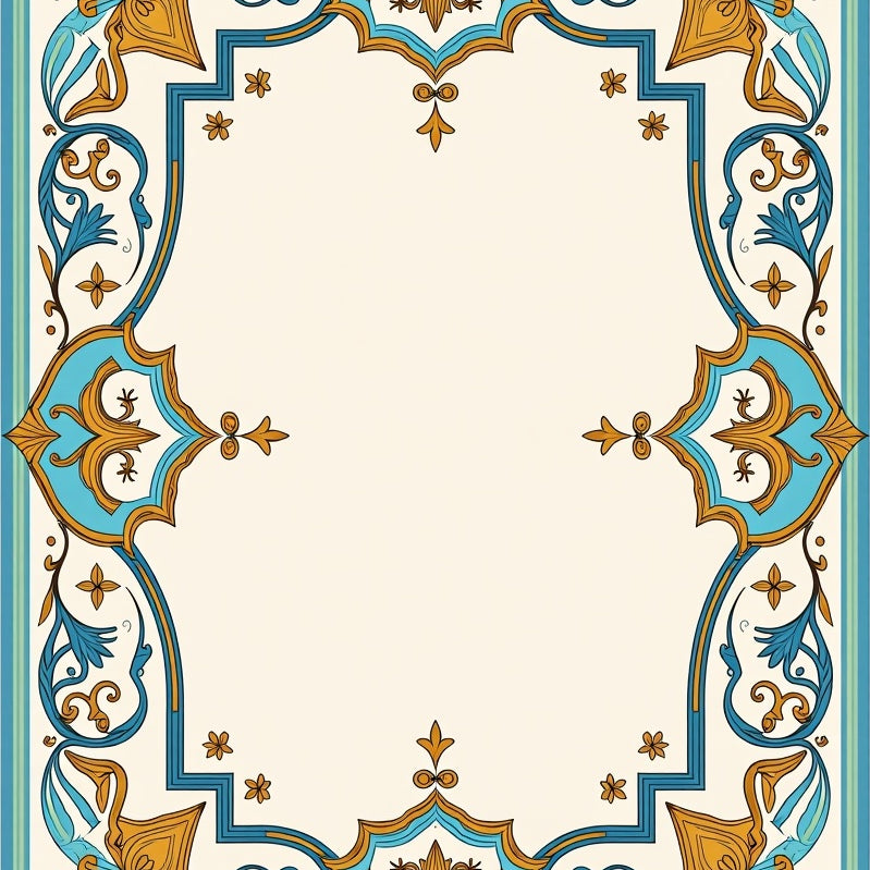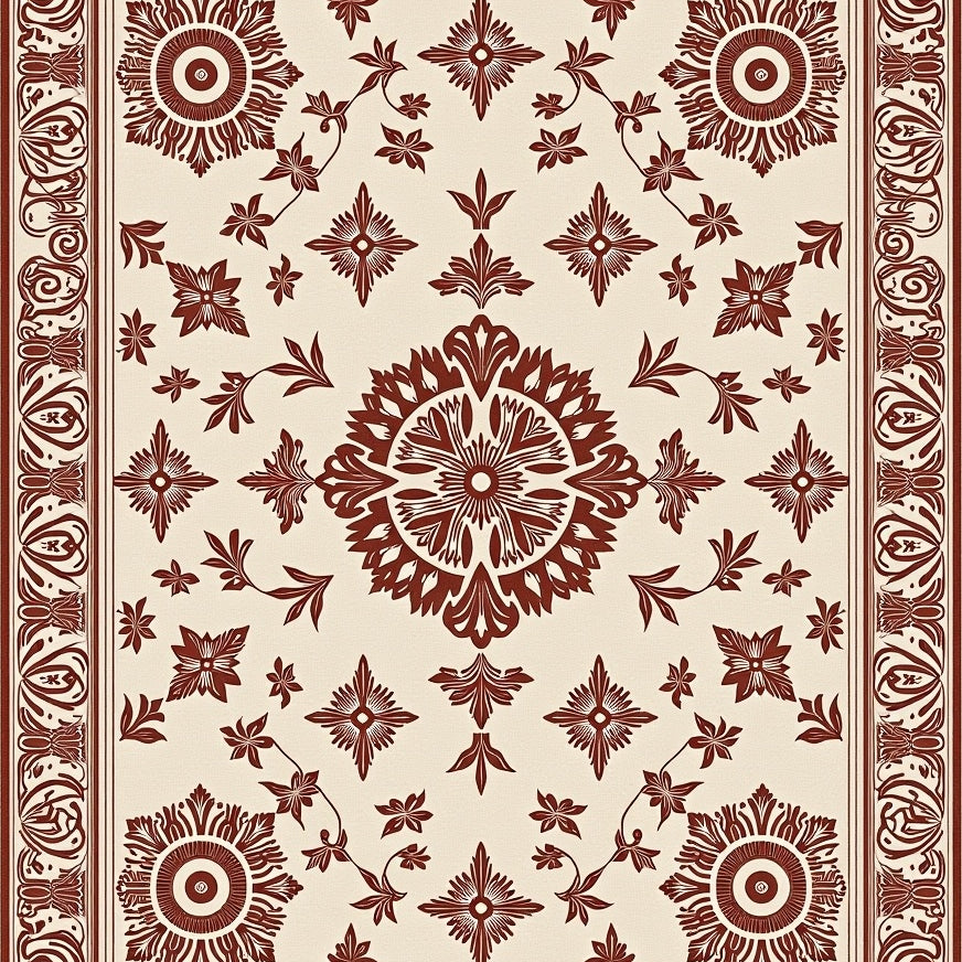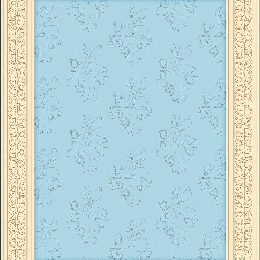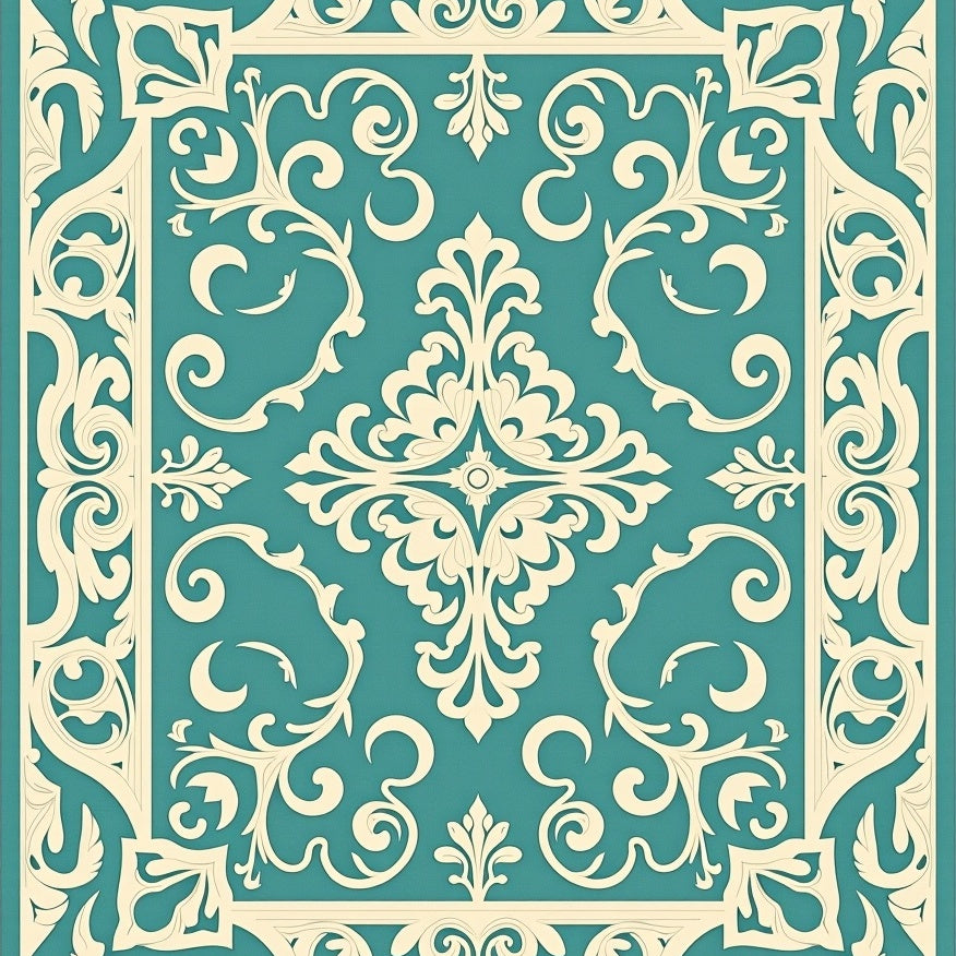 Damask Scrollwork with Vintage Ornamental Border Design (Beige)