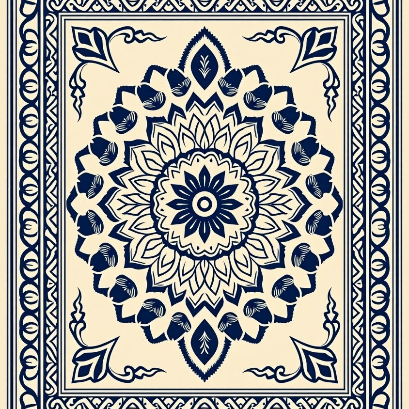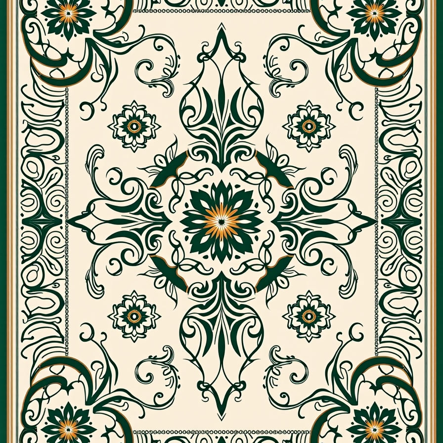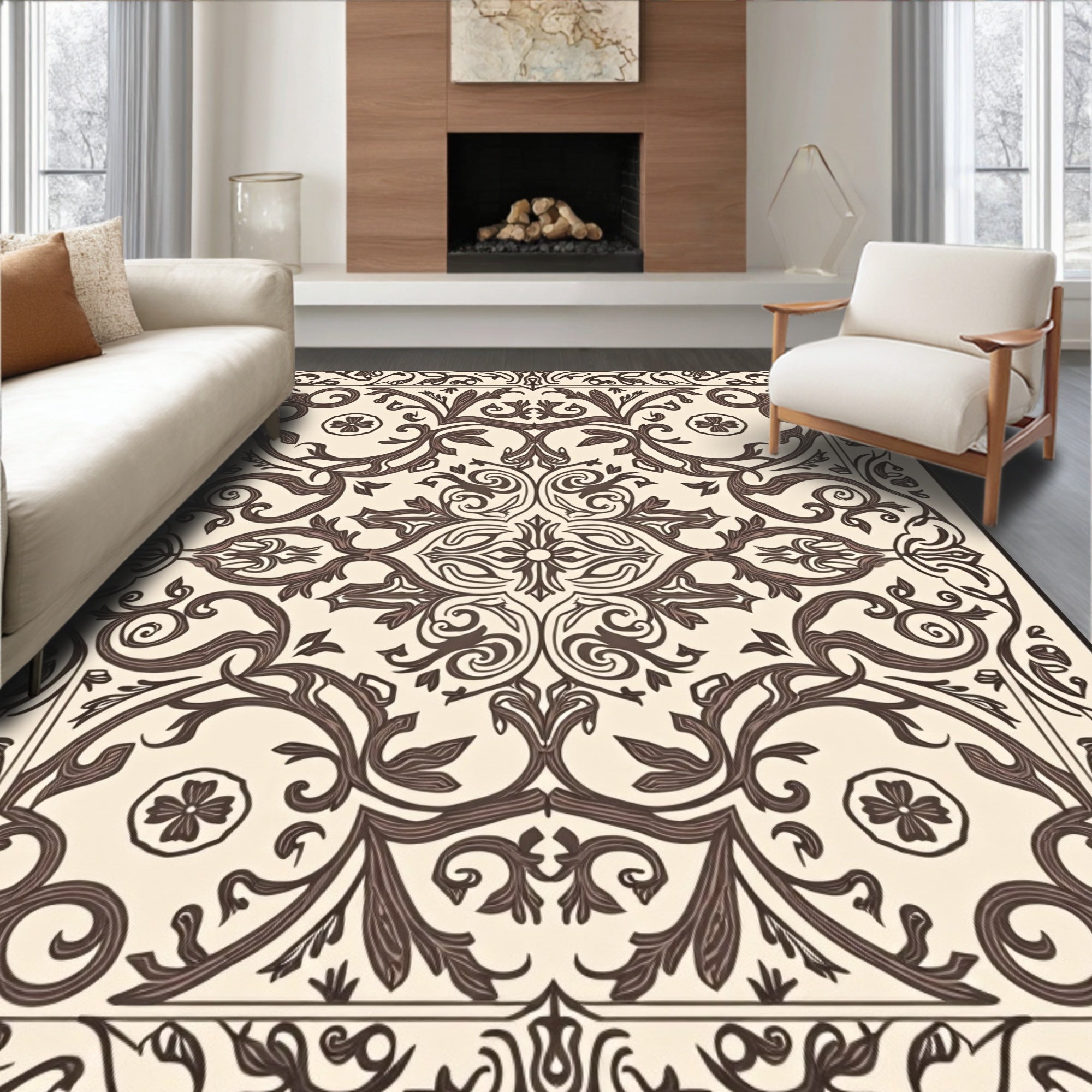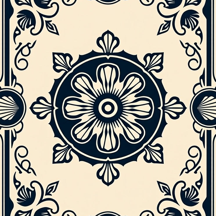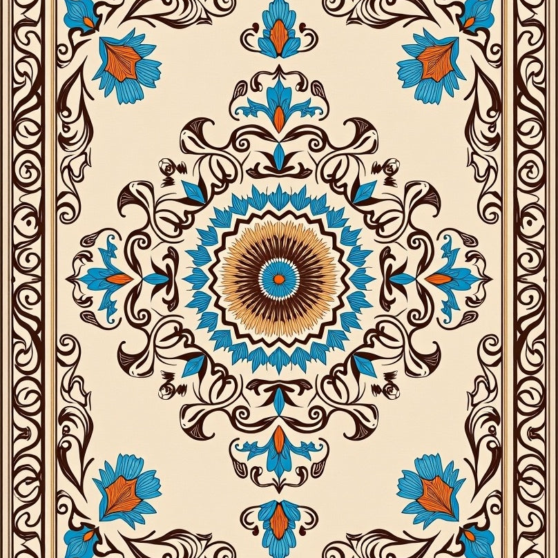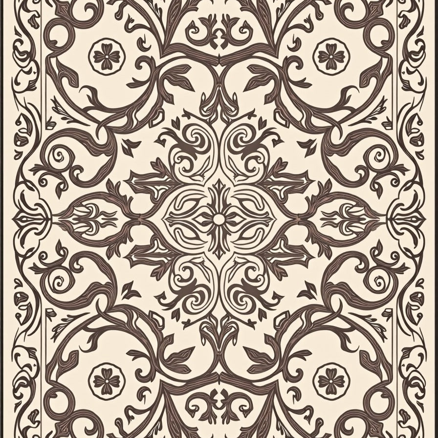 Vintage Medallion Blossom with Boho Scrollwork Motifs (Beige)