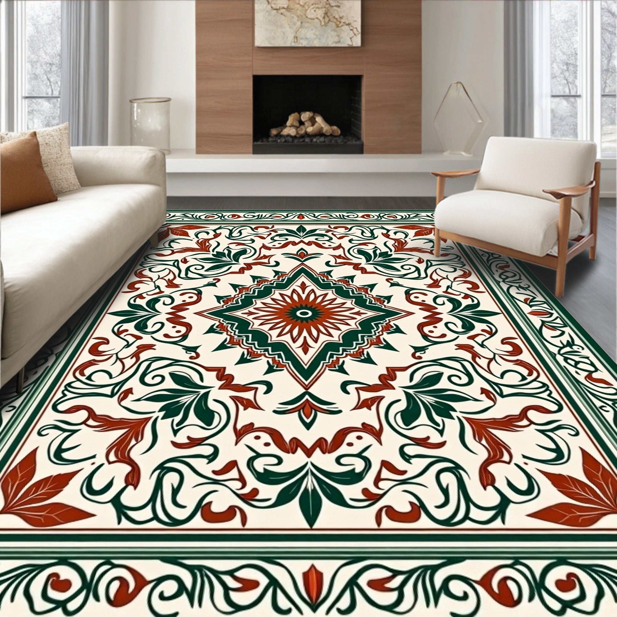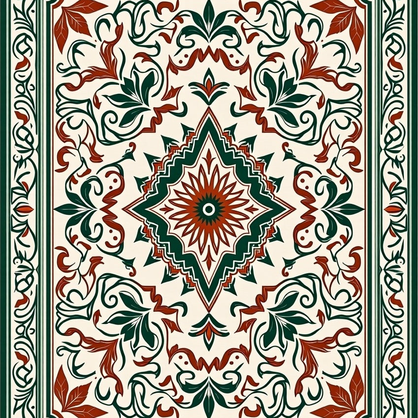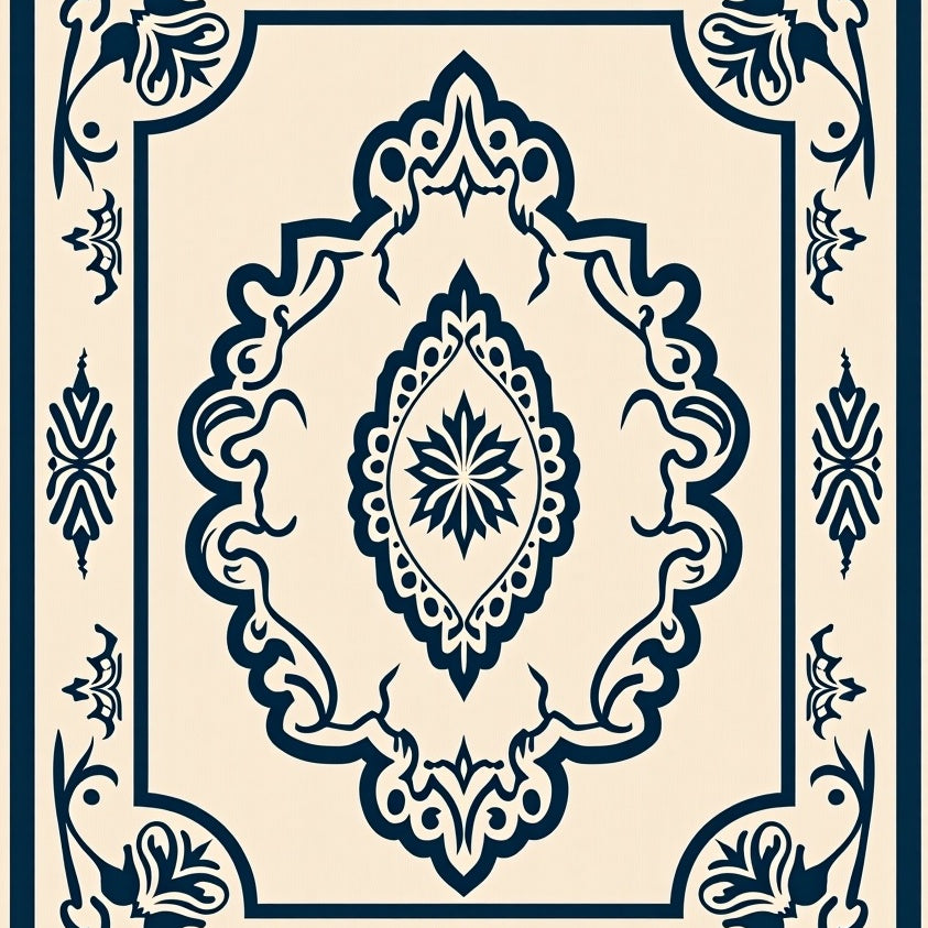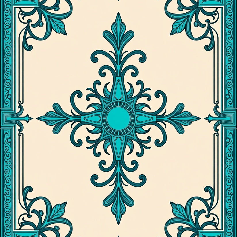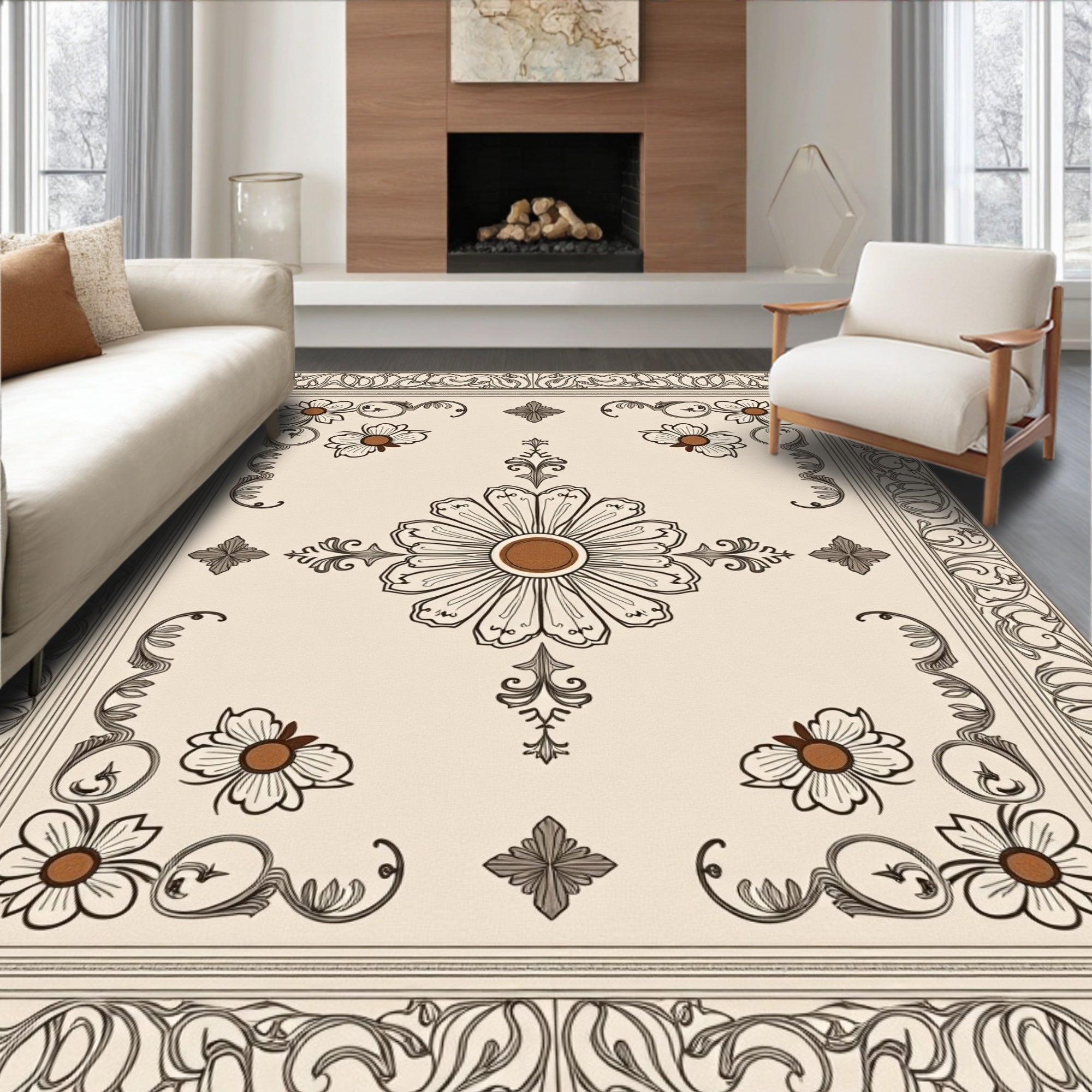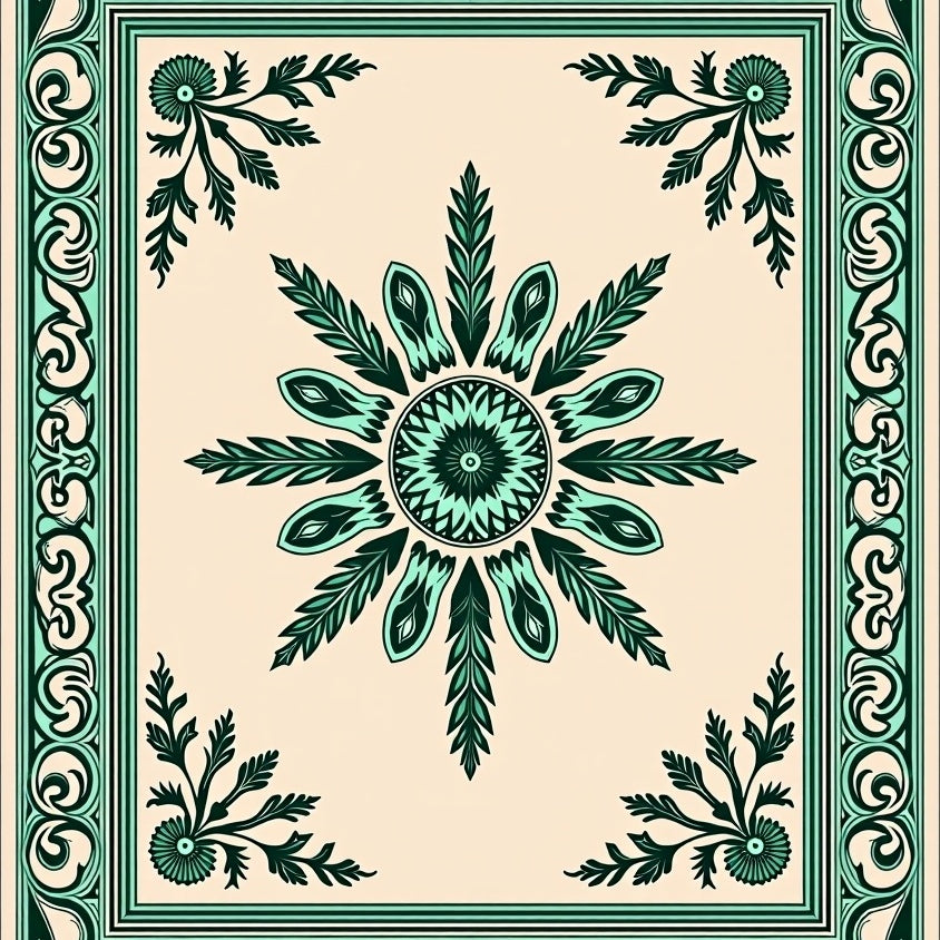 Vintage Medallion Blossom with Boho Scrollwork Motifs (Beige)