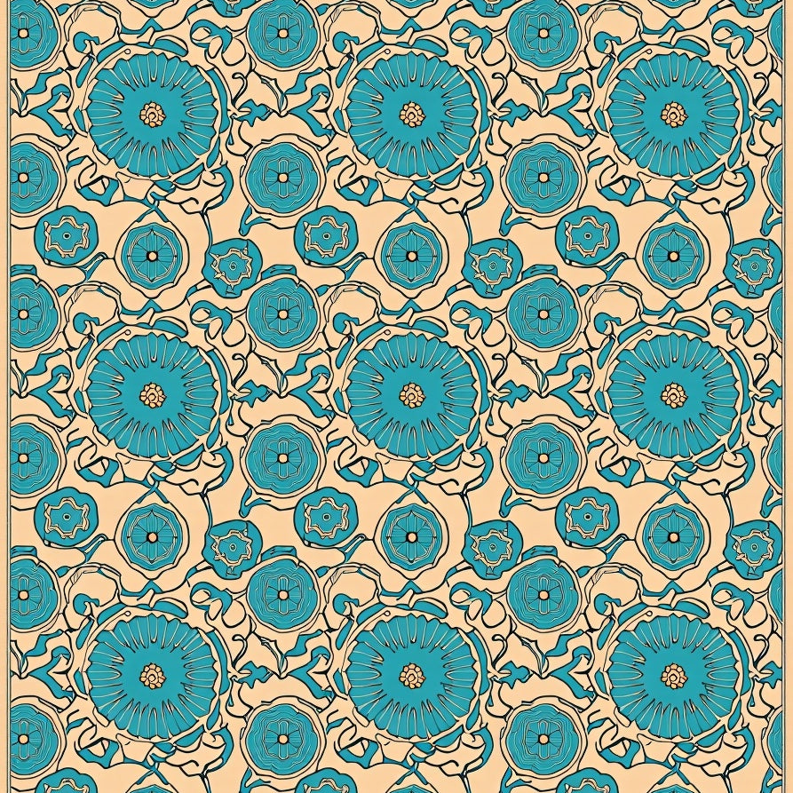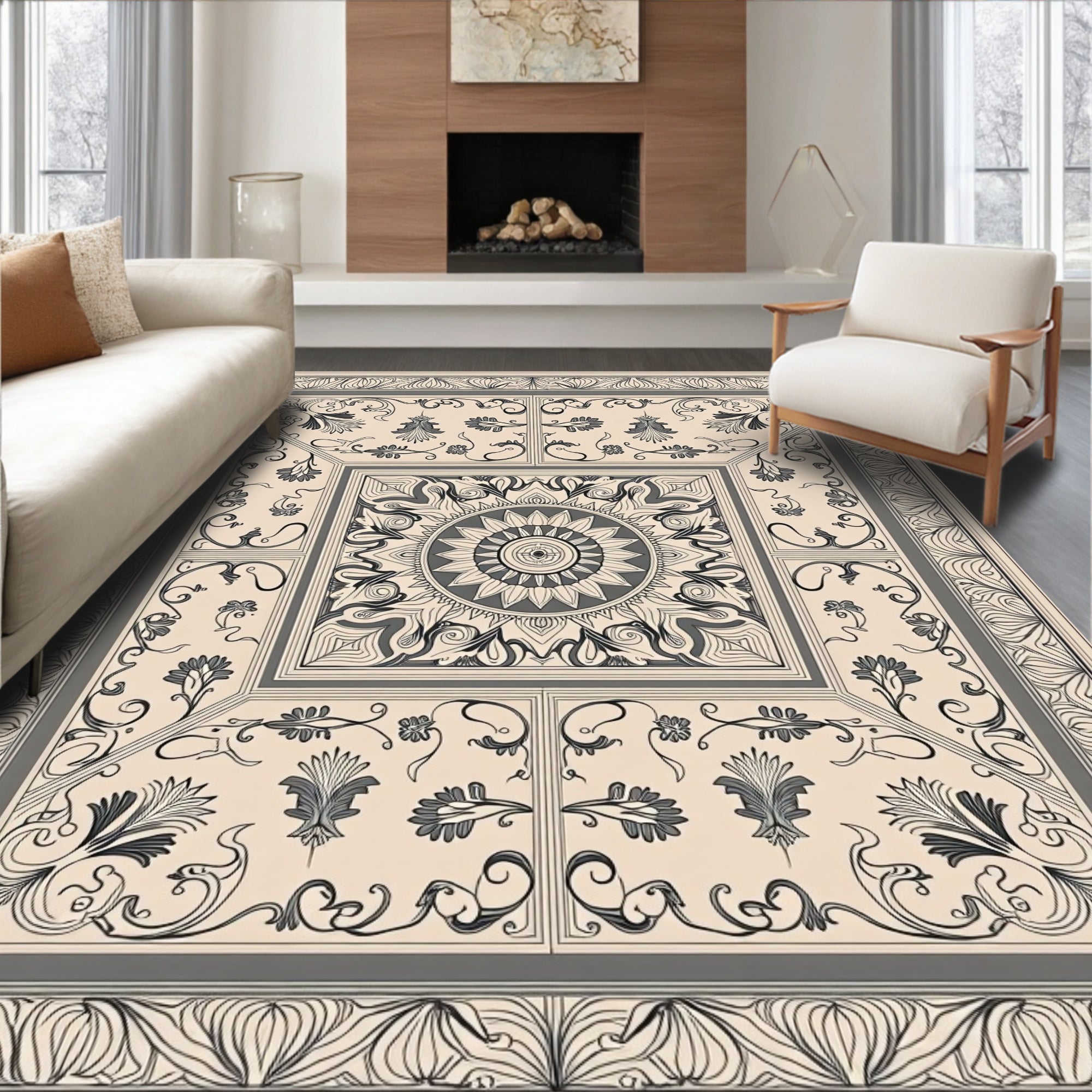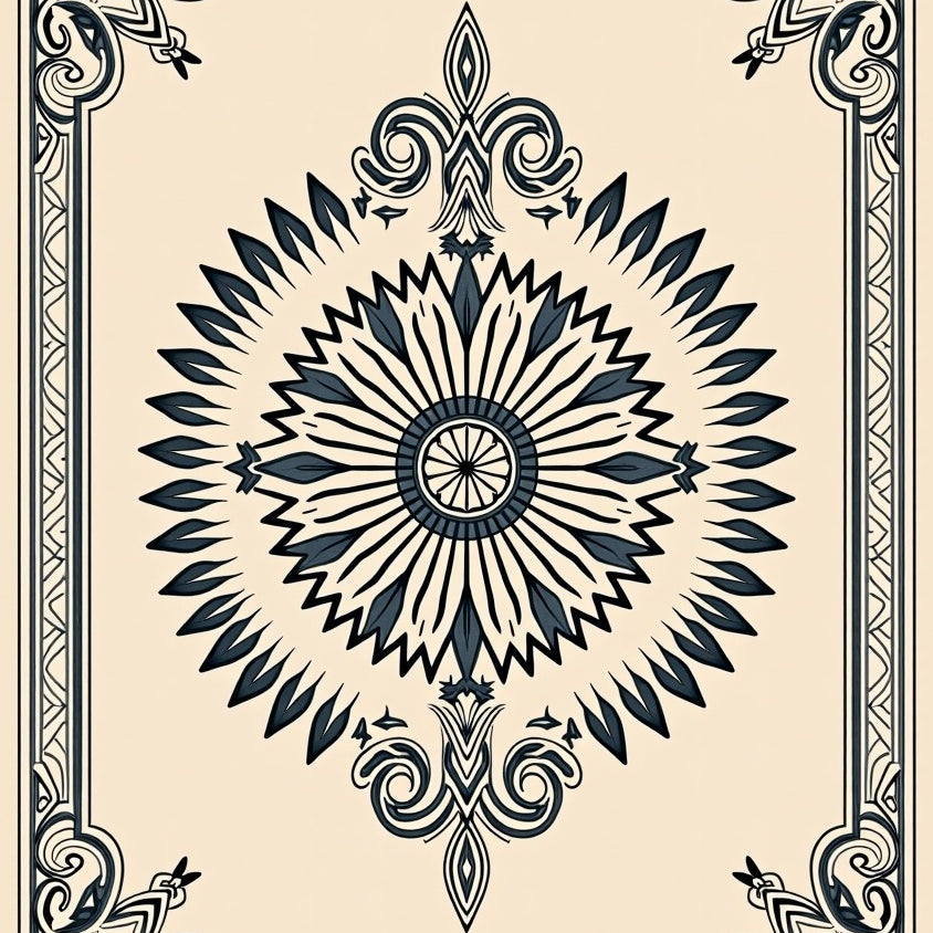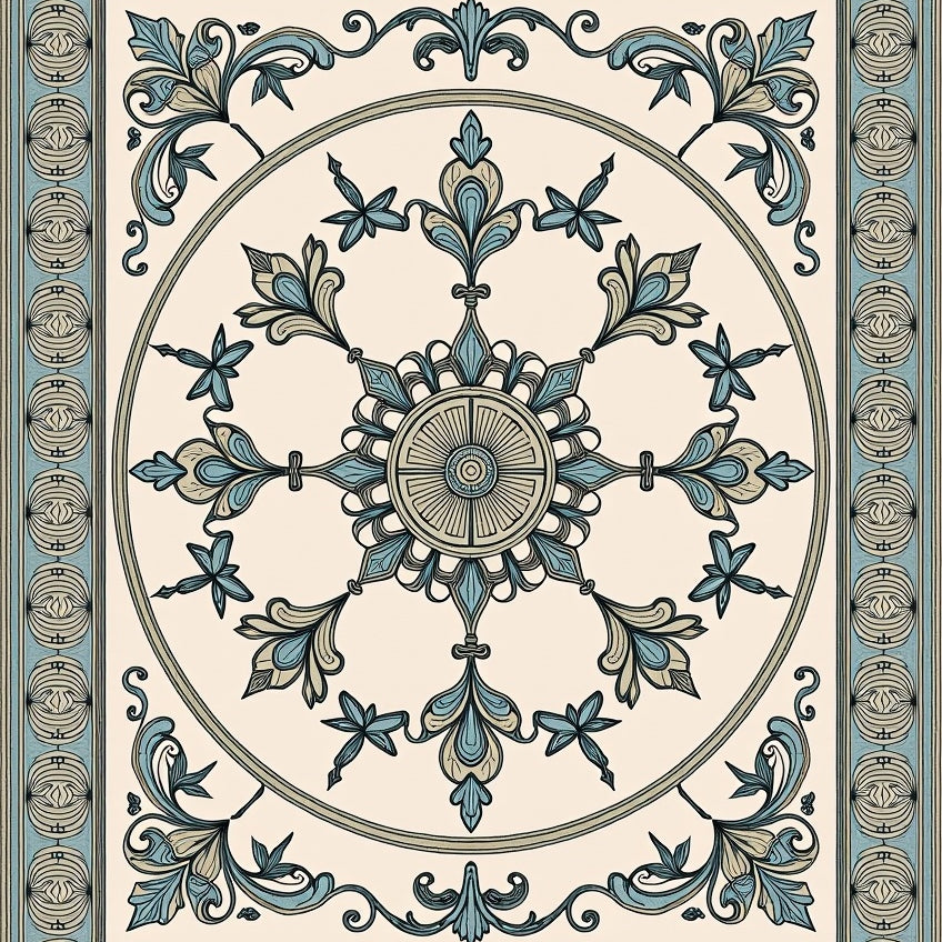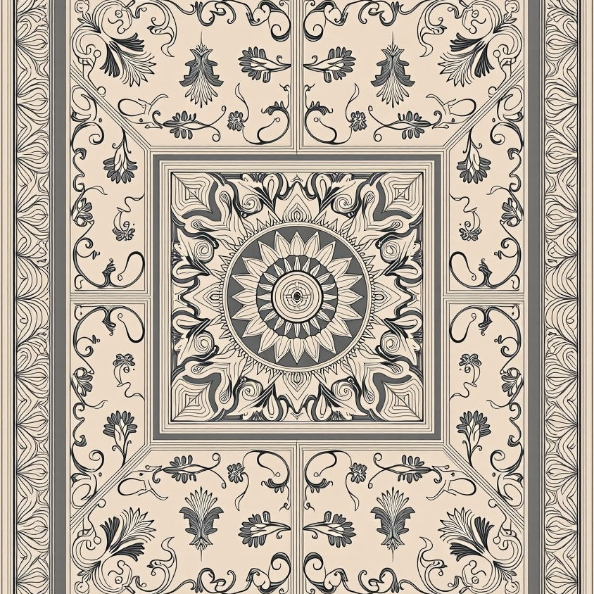 Vintage Swirl Medallion with Ornate Botanical Motifs (Beige)