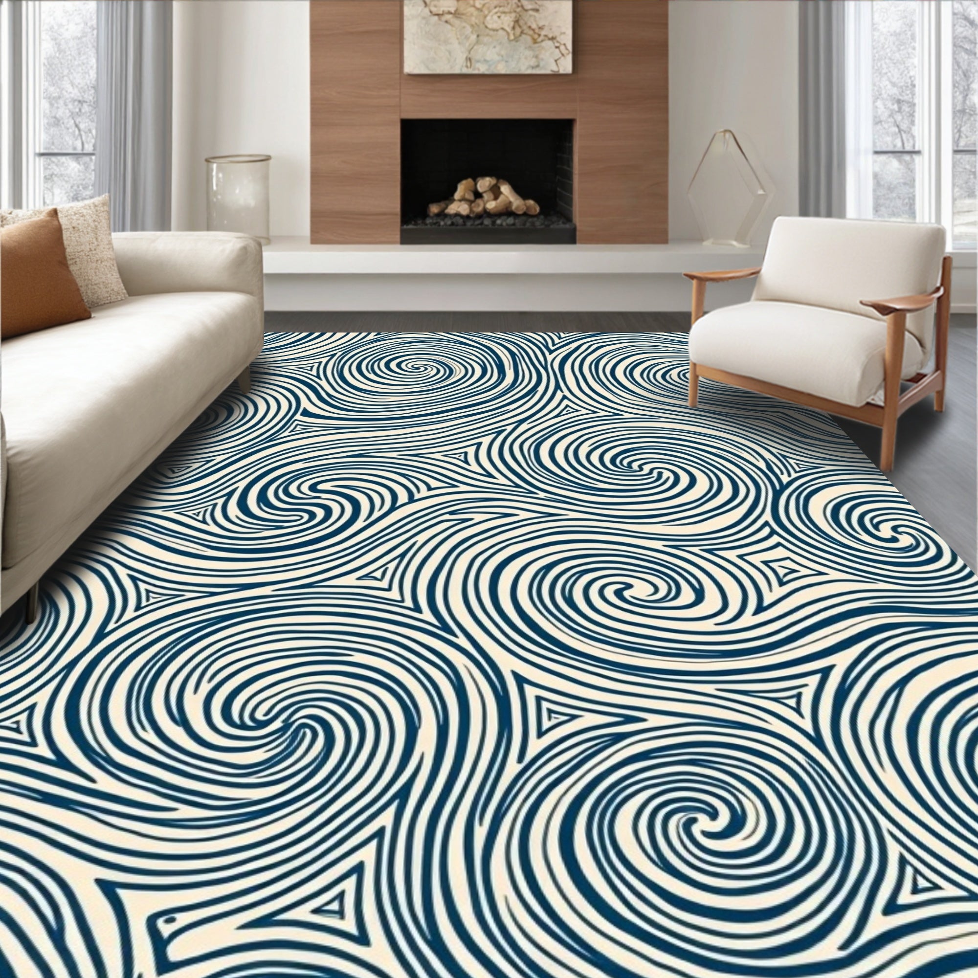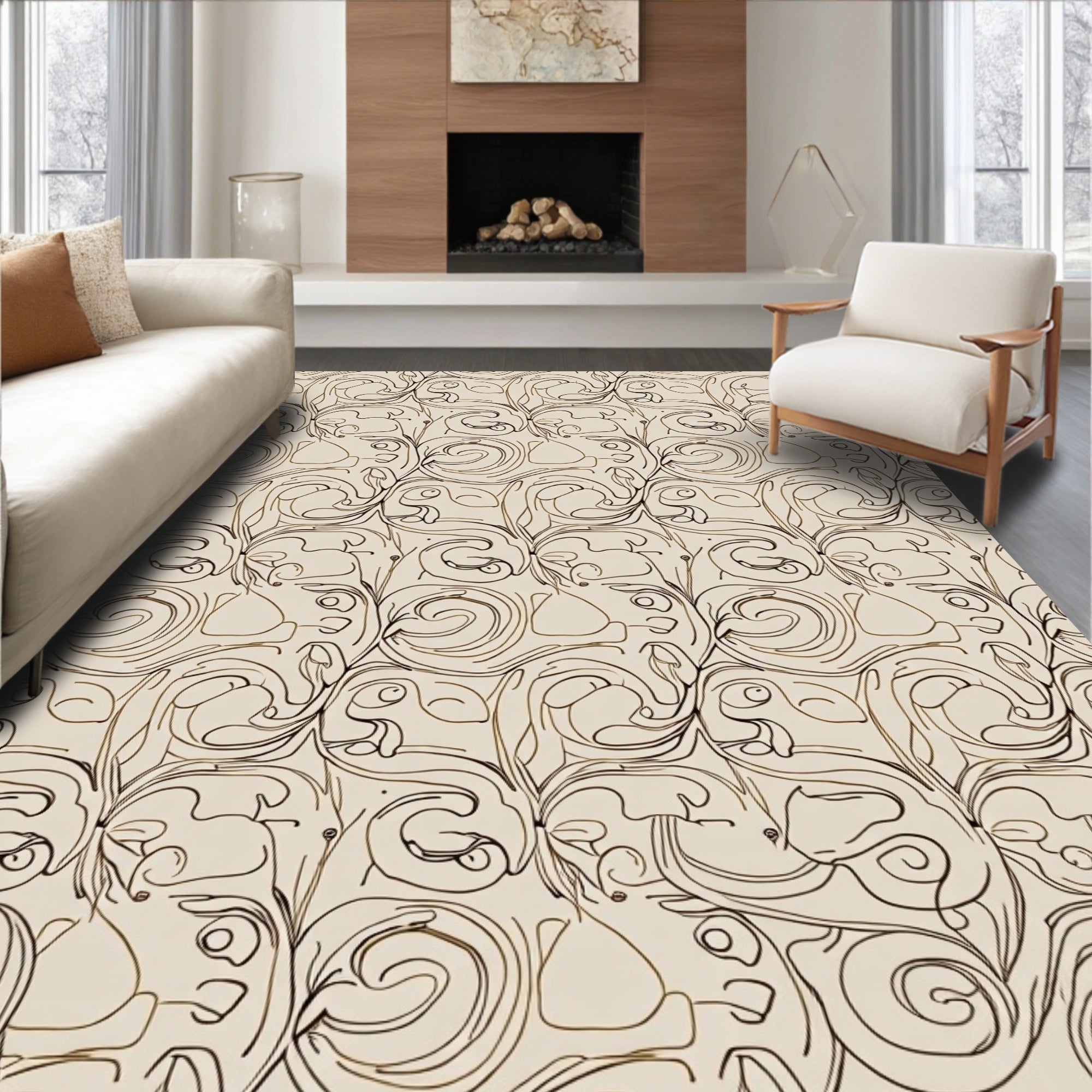 Elegant Swirl Medallion Abstract Artistic Luxury Contemporary (Beige)