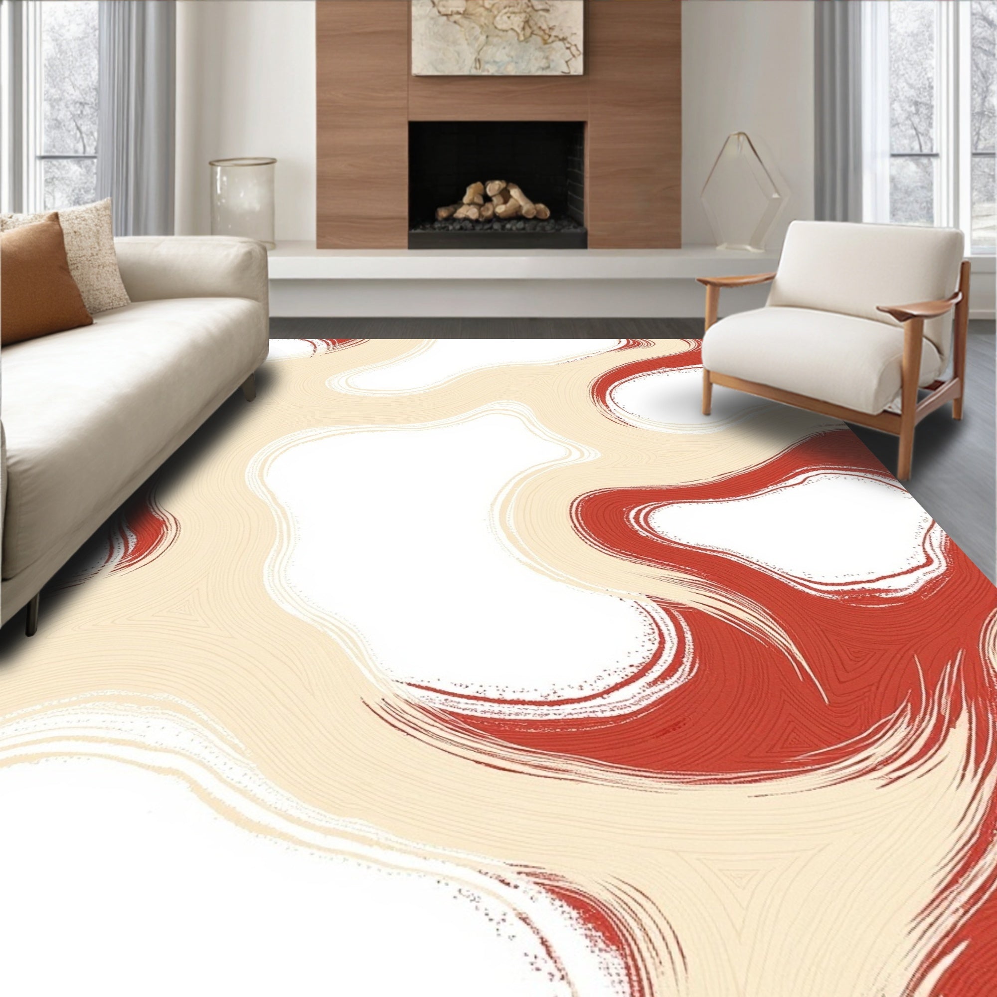 Abstract Brushstroke Modern Non Shedding Design (Beige)