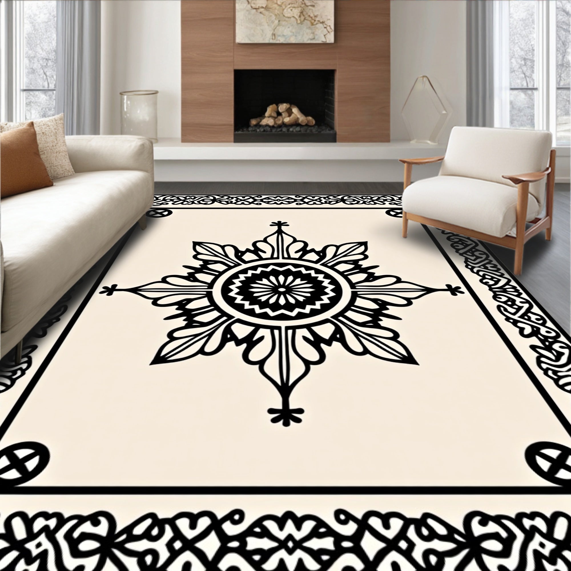 Velvety Inspired Medallion with Intricate Borders (Beige)