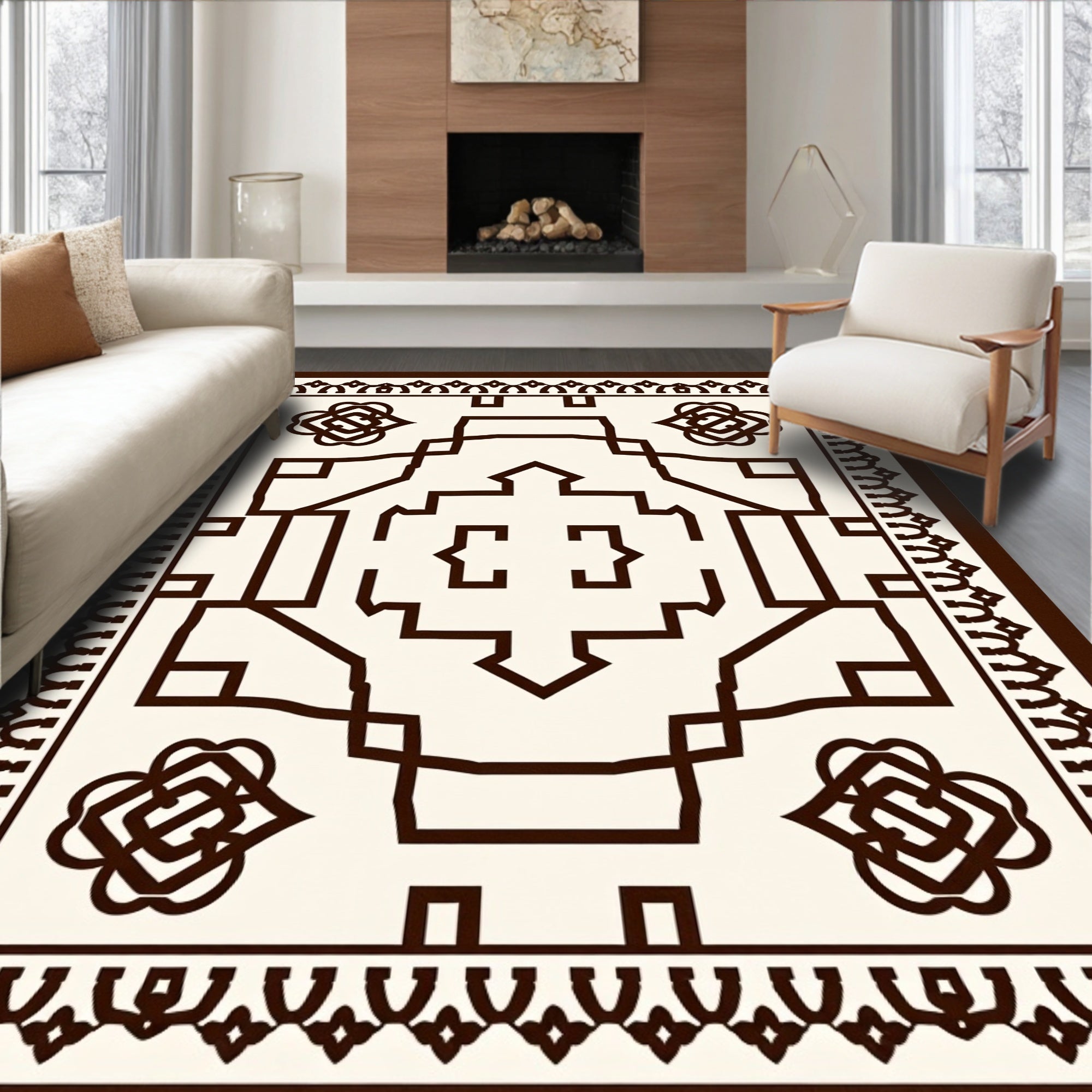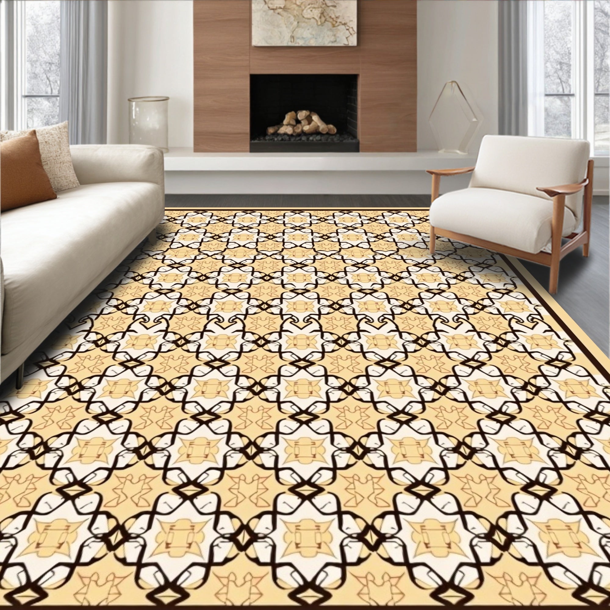 Zigzag Medallion Contemporary Elegant Luxury (Beige)
