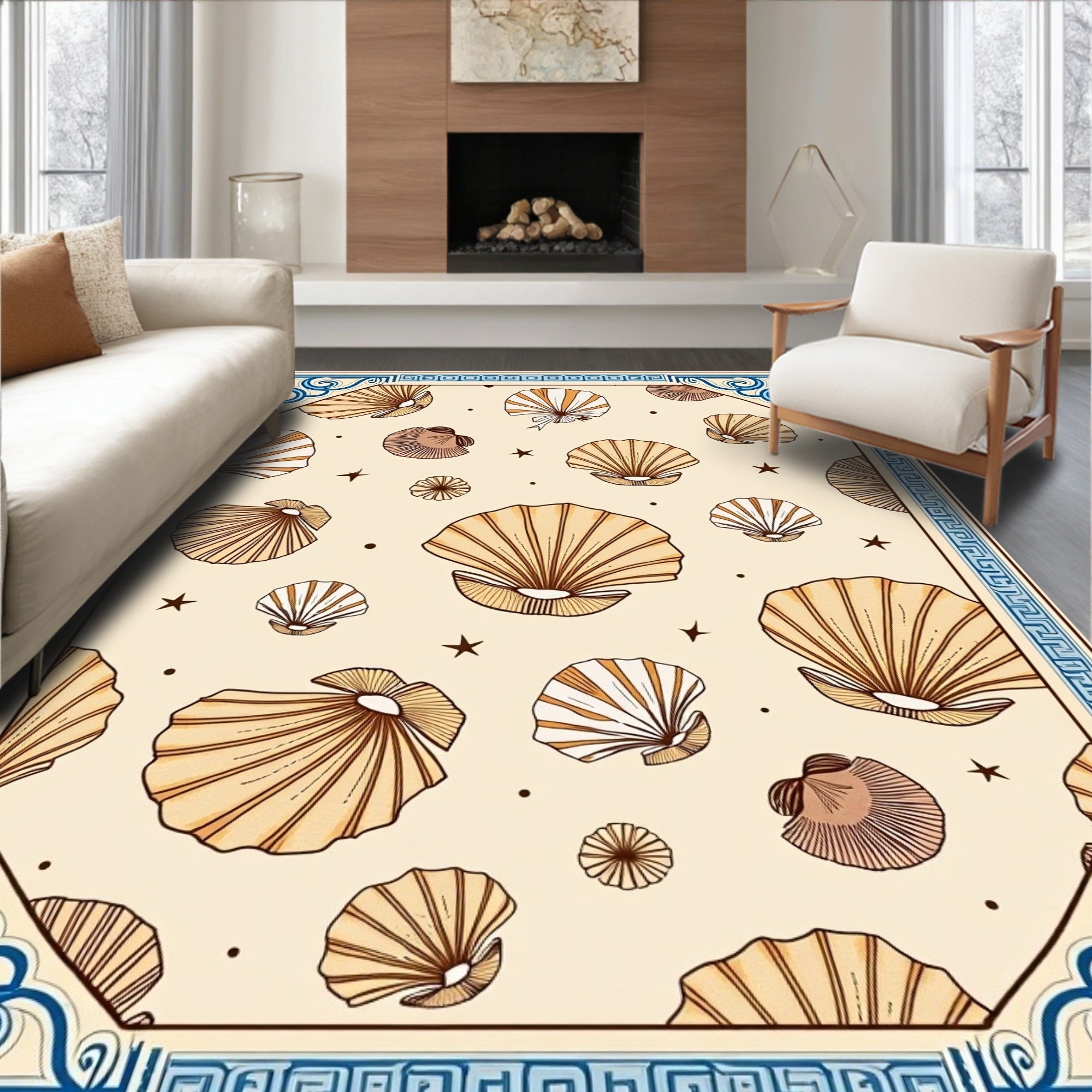 Nautical Medallion with Shell Motifs and Wavy Borders(Beige)