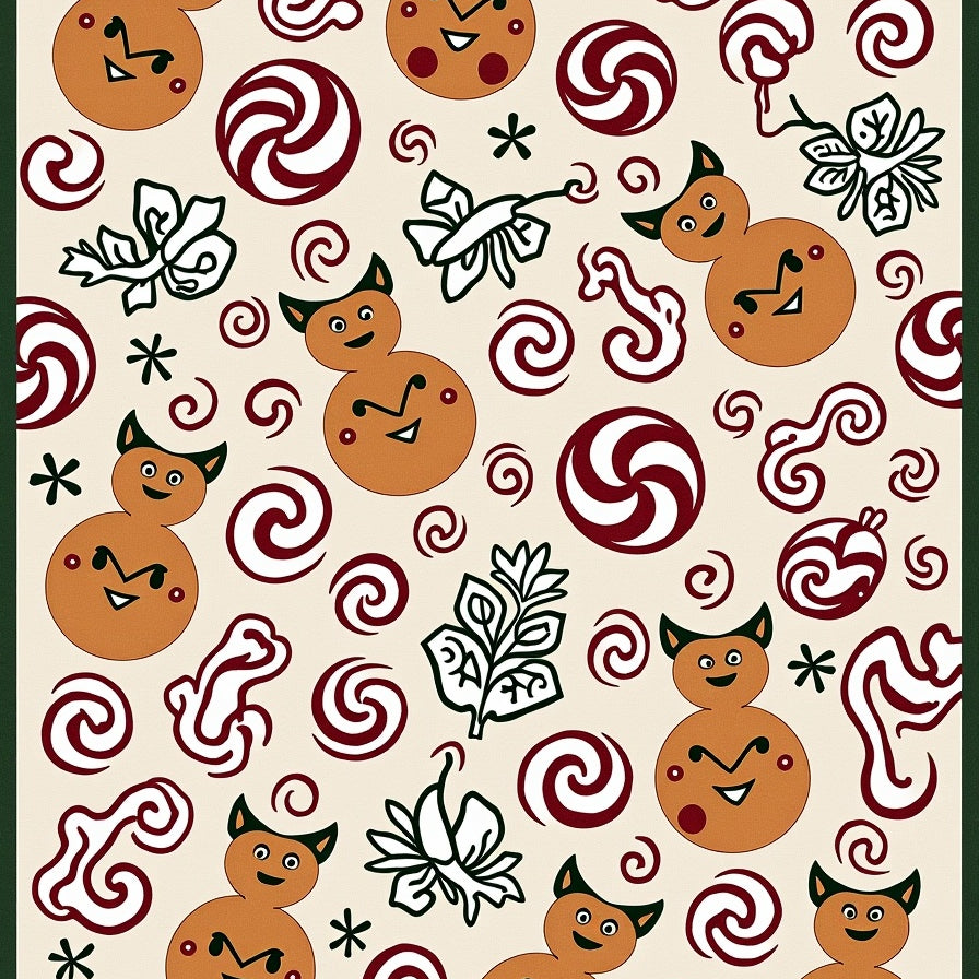 Cane Wonderland with Smiling Biscuit Characters and Winter Motifs(Beige)