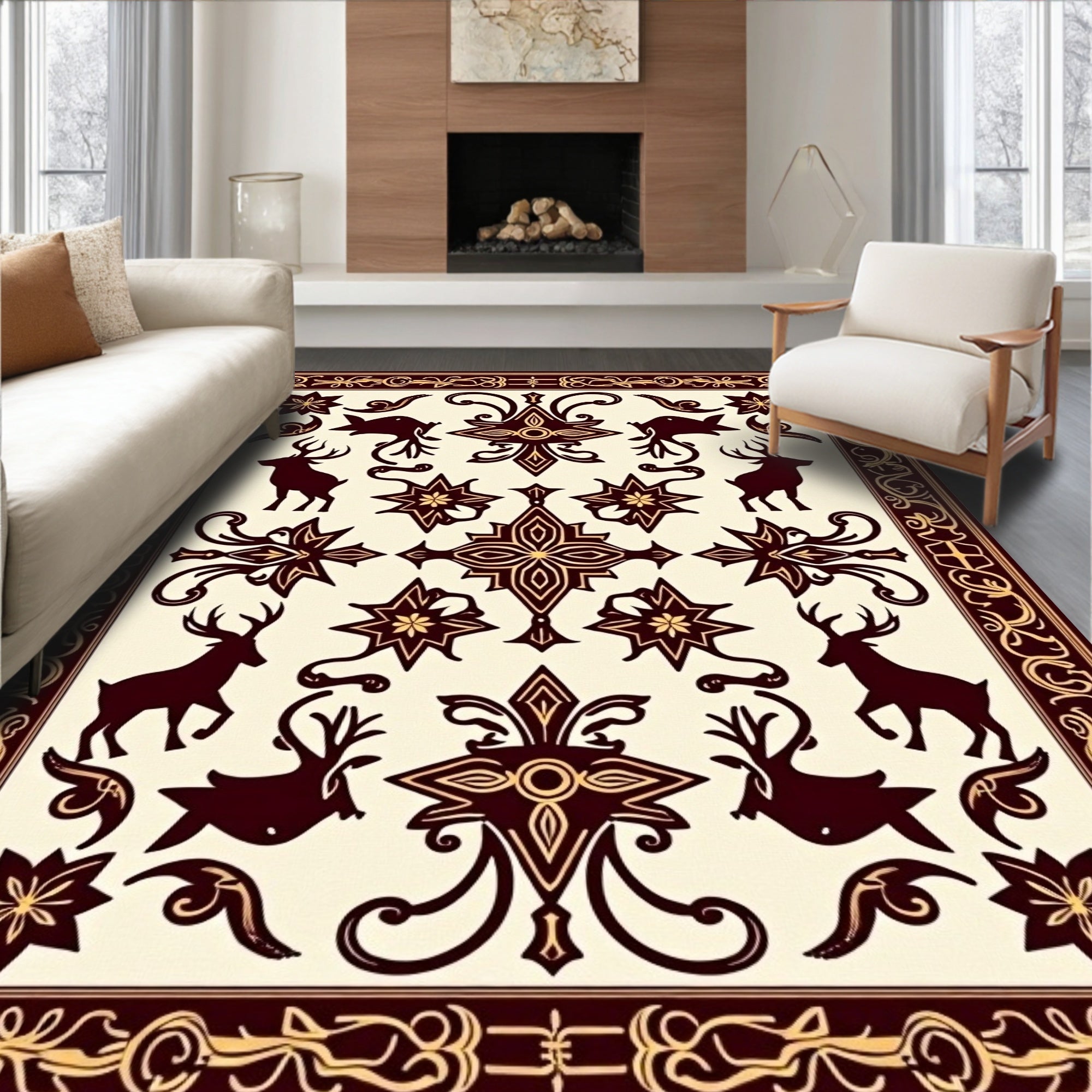 Premium Western Style Accent Rug with Unique Spotted Décor(Beige)