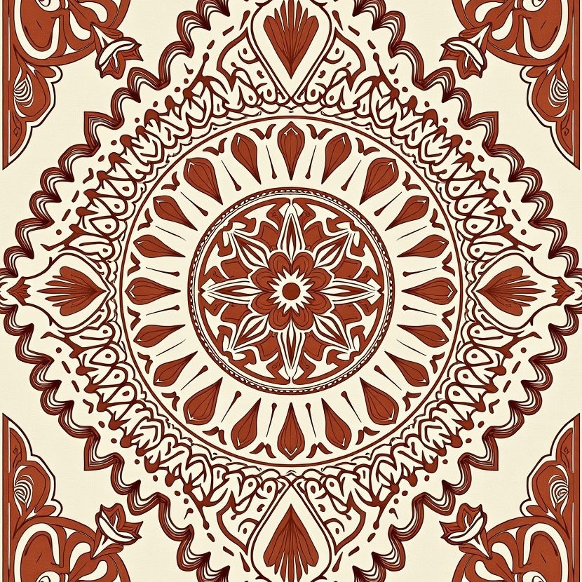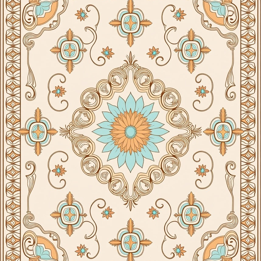 Elegant Lattice Medallion Vintage Floral Trellis Ornate Symmetrical (Beige)