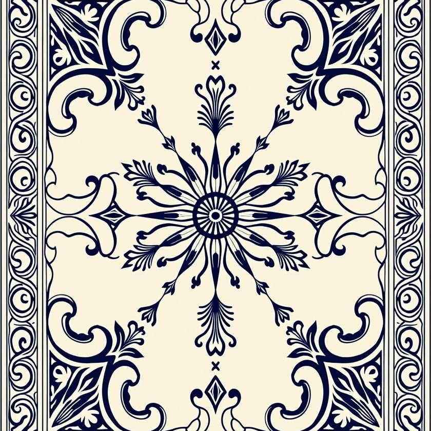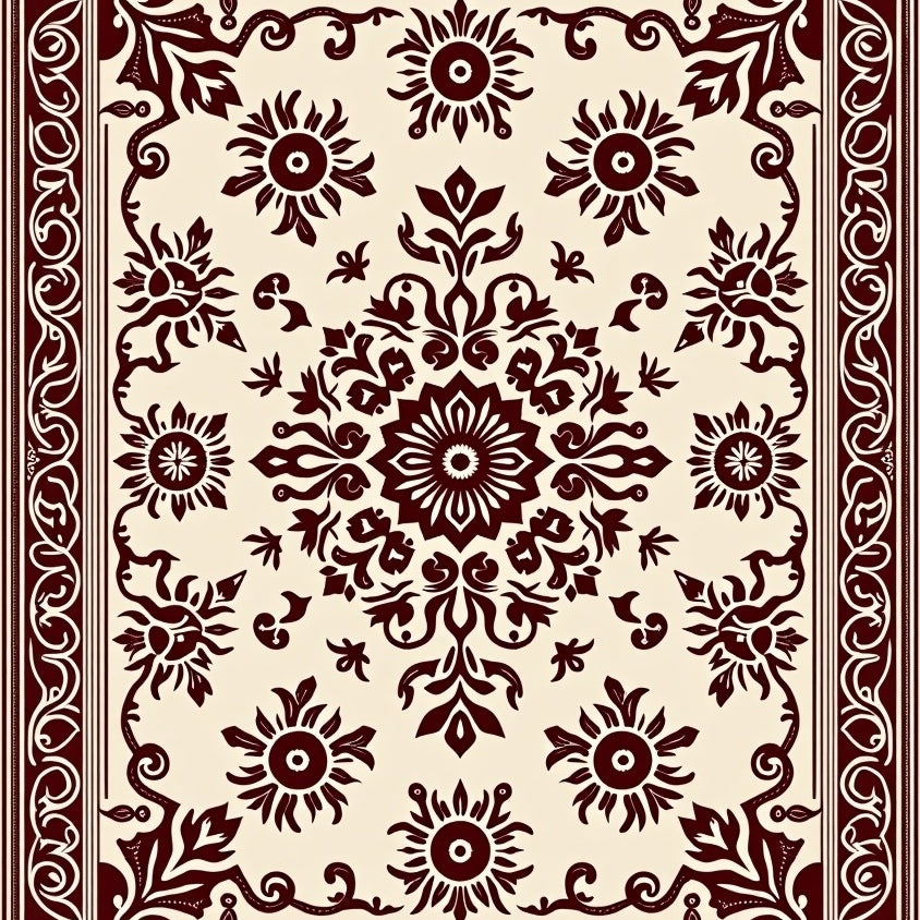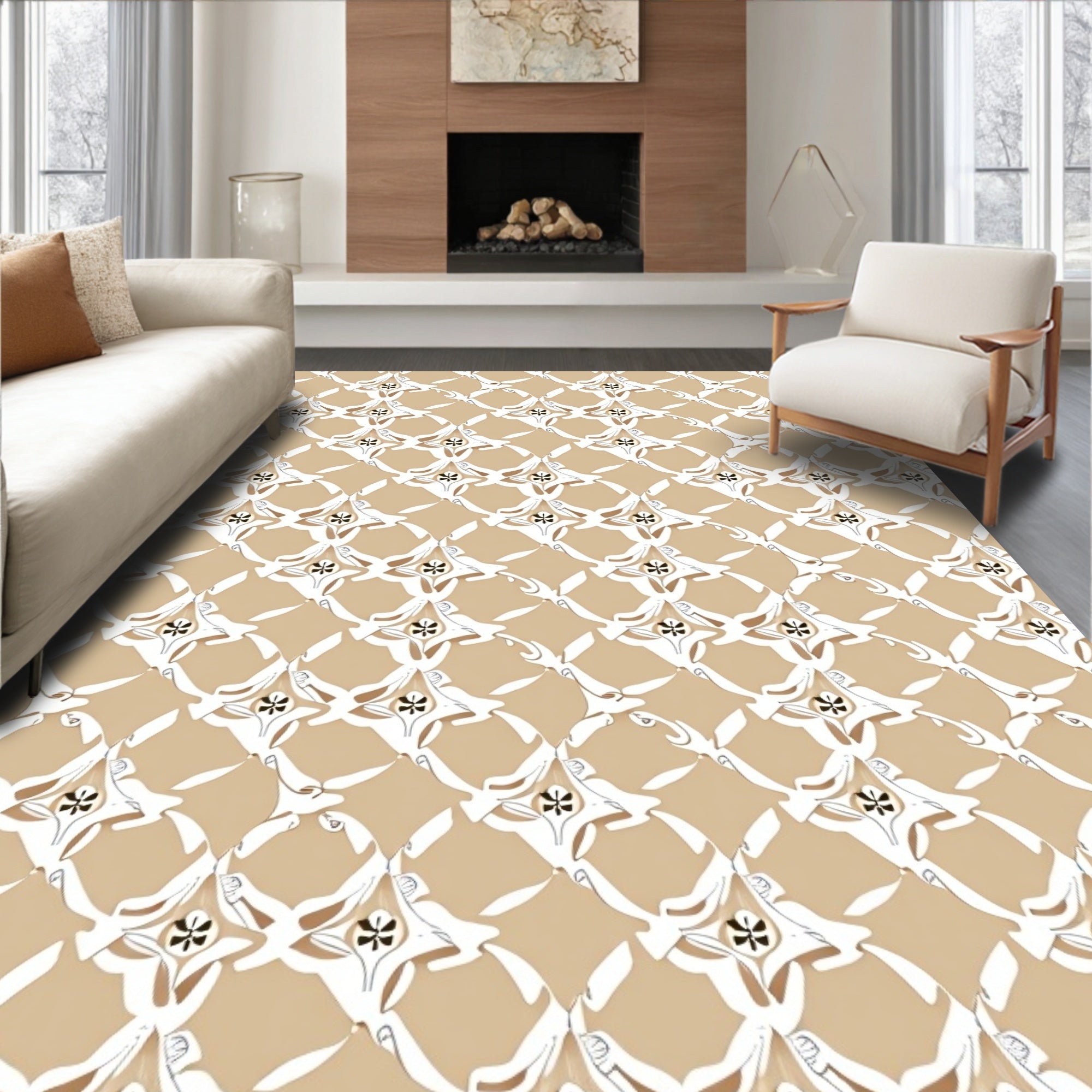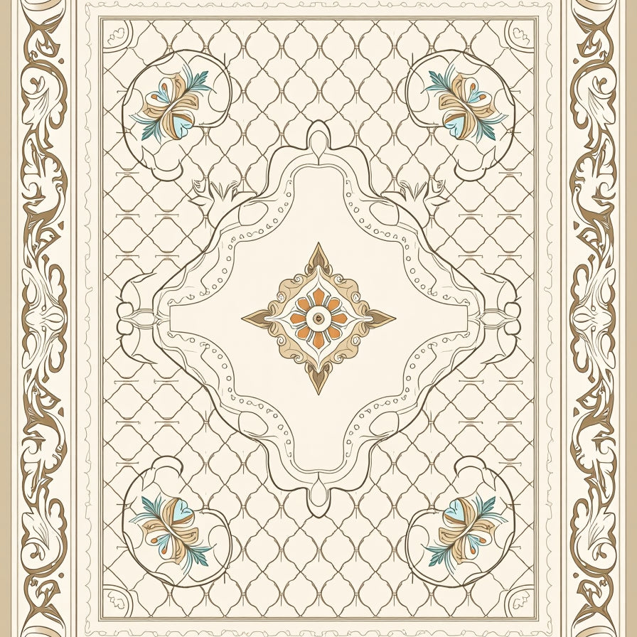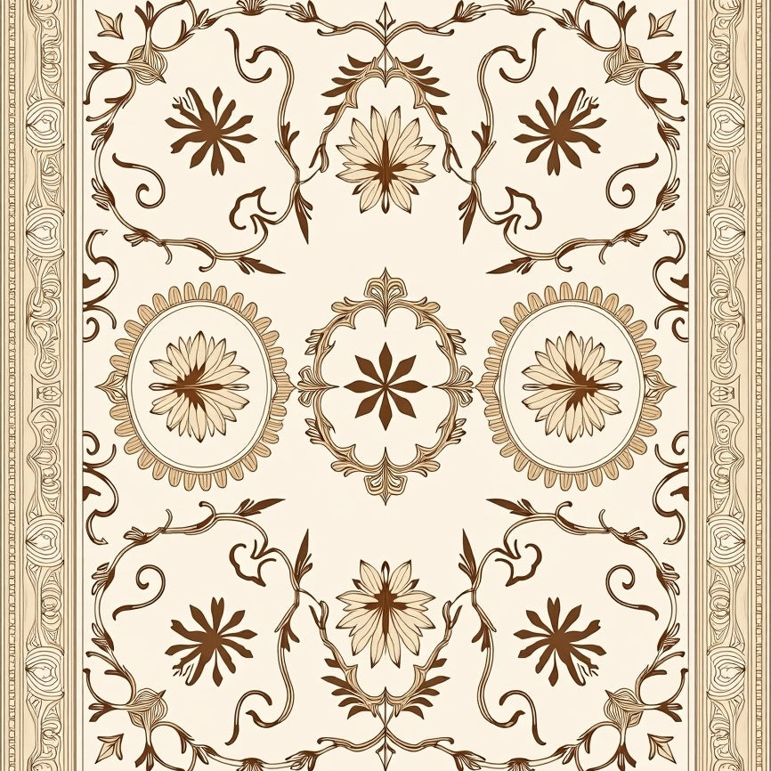 Elegant Botanical Motif Interlocking Medallion (Beige)