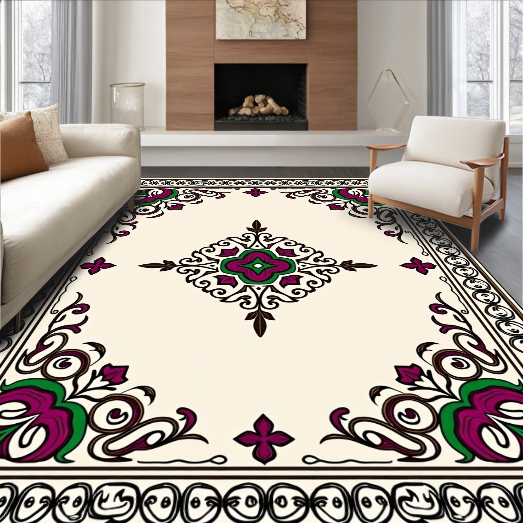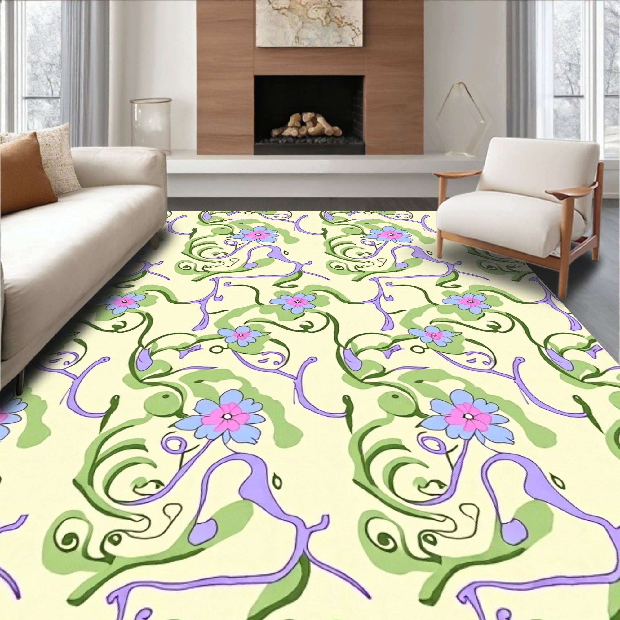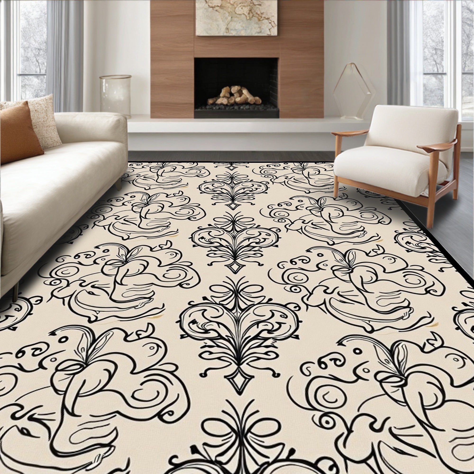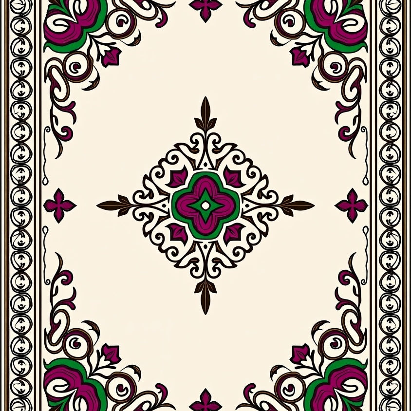 Elegant Botanical Motif Interlocking Medallion (Beige)