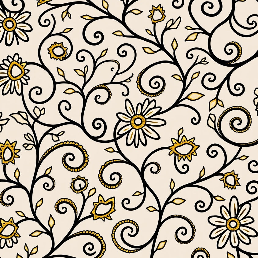 Enchanted Botanical Vine Scrollwork Luxurious Decorative Embellished (Beige)