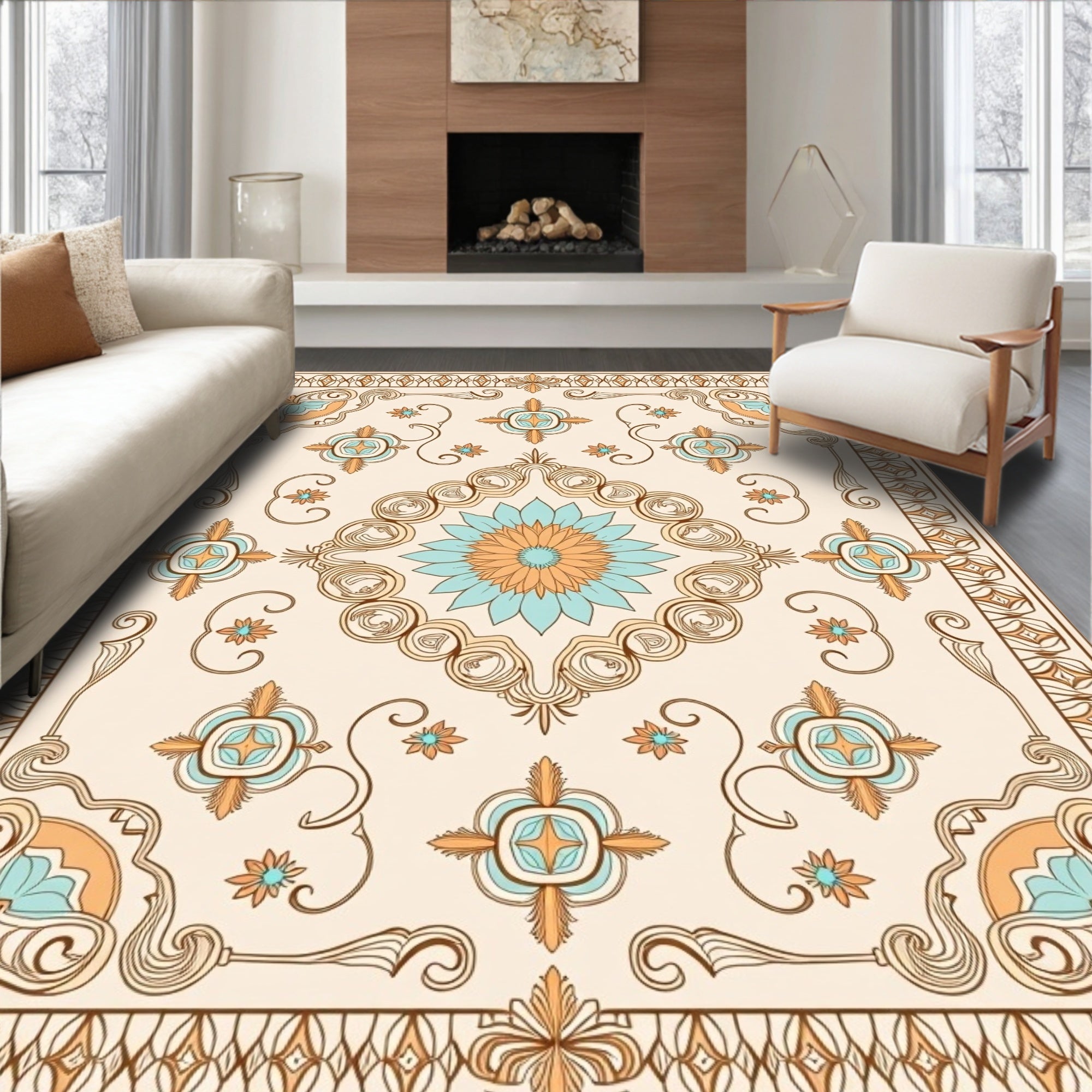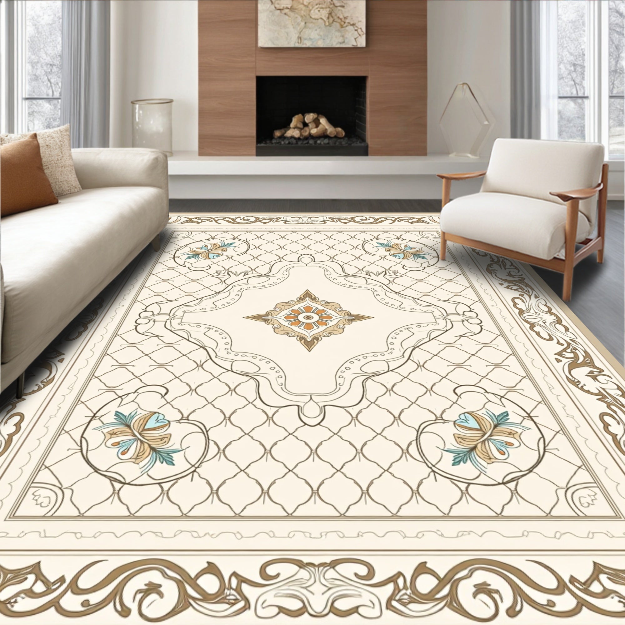 Luxurious Medallion Swirl Plush Comfort Elegance (Beige)