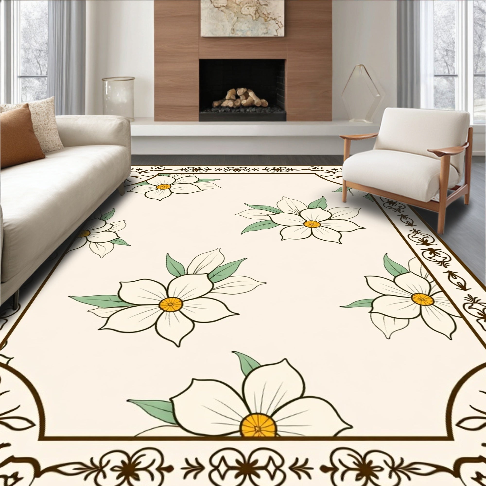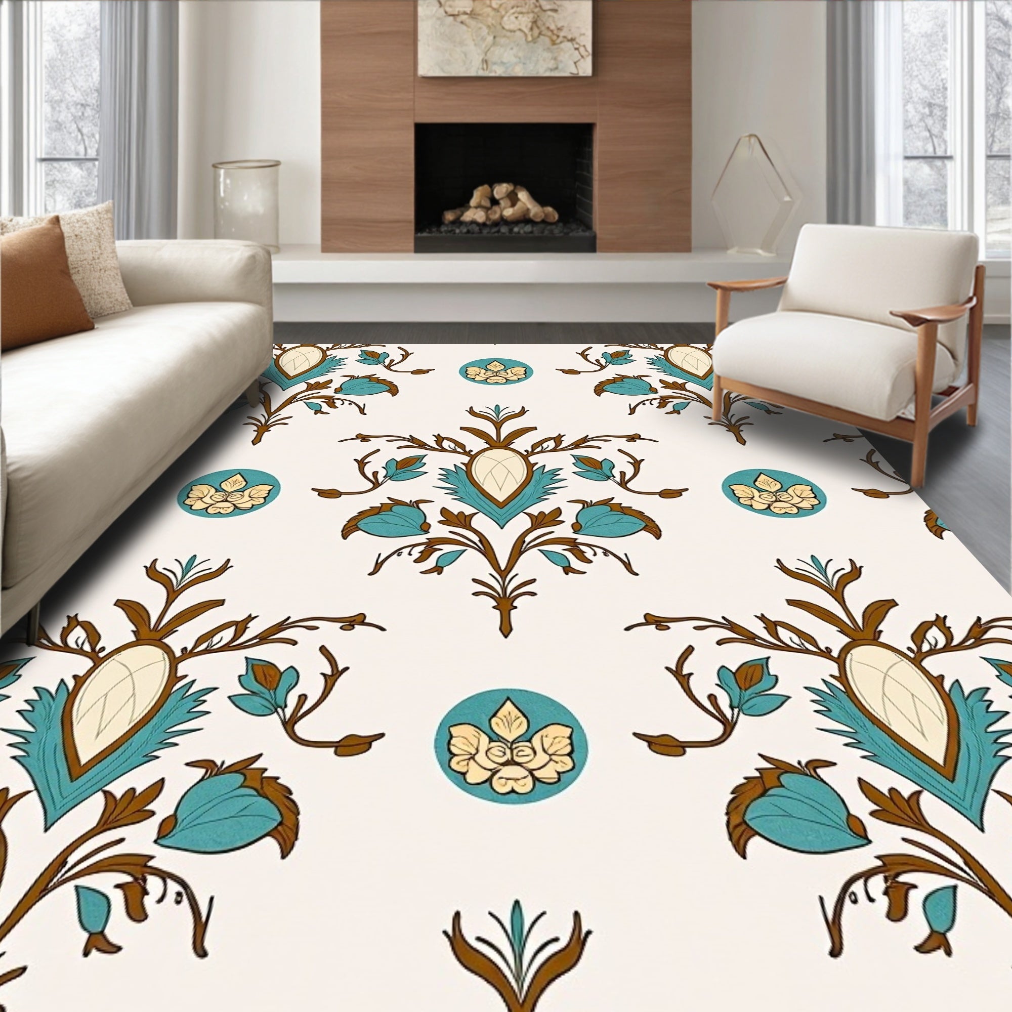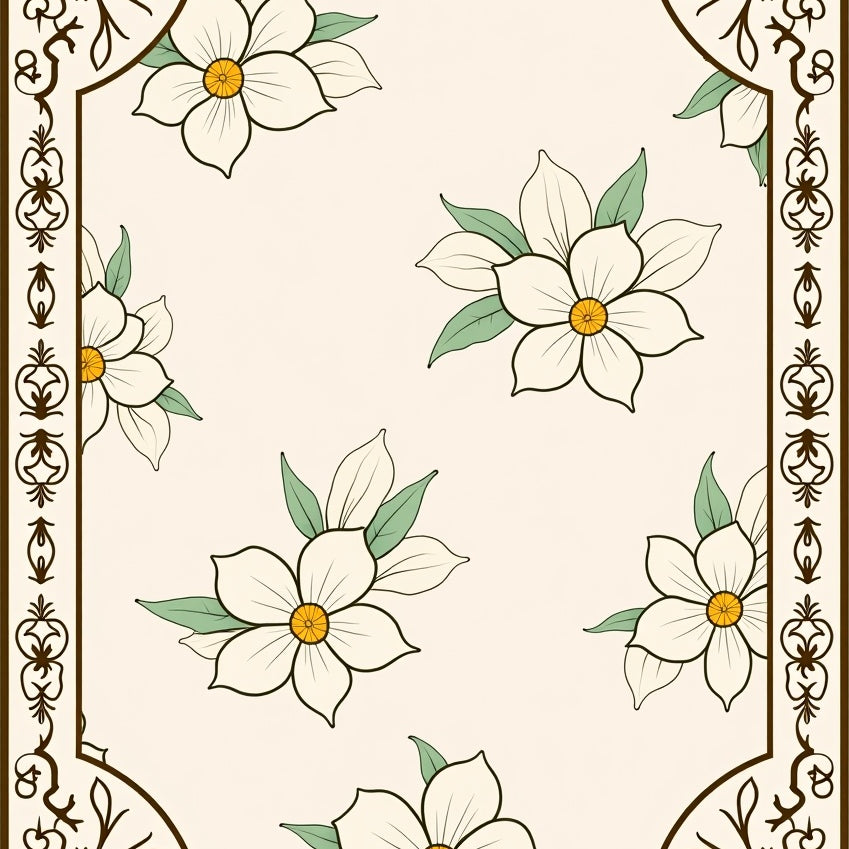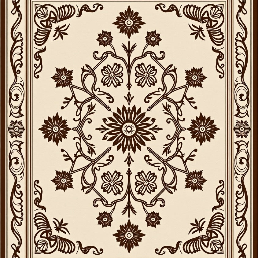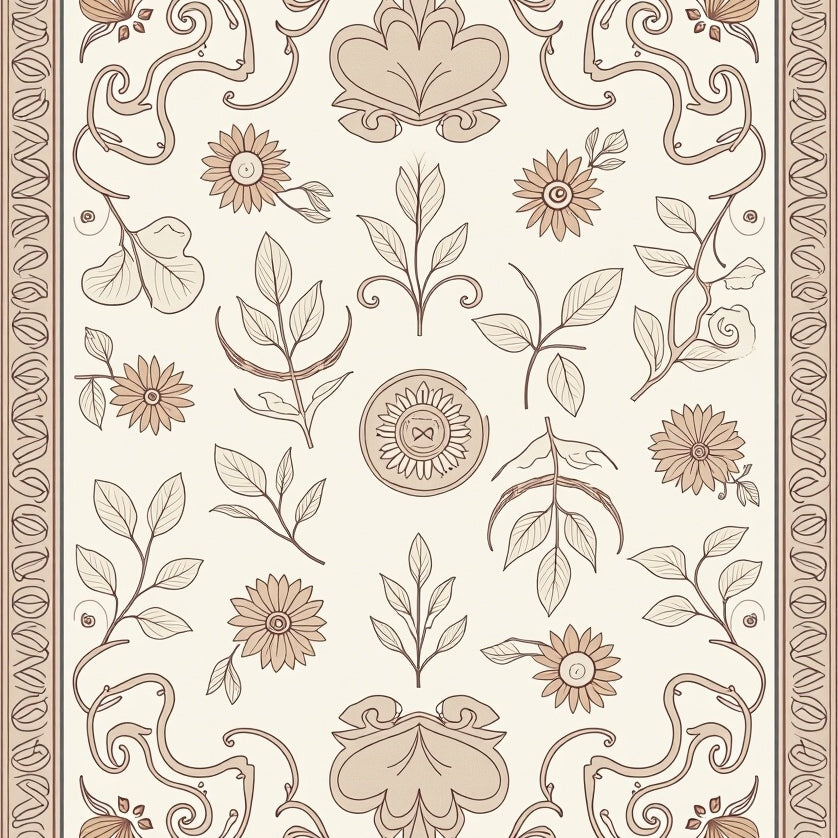 Elegant Vintage Botanical Motif Heritage Handwoven Artistic (Beige)