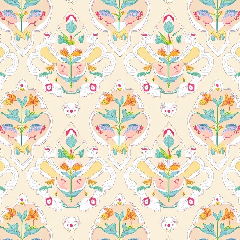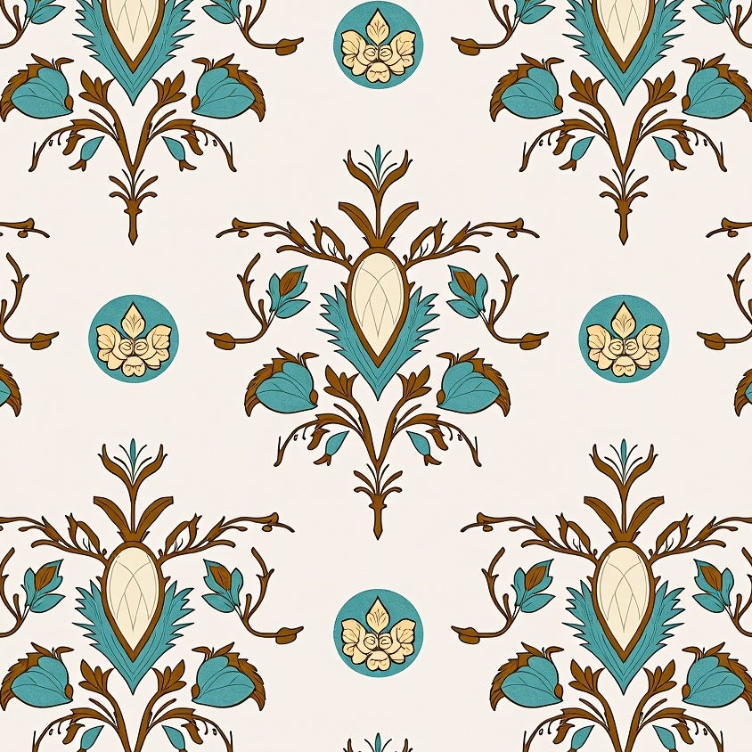Vintage Floral Botanical Medallion Heritage Damask Ornate (Beige)