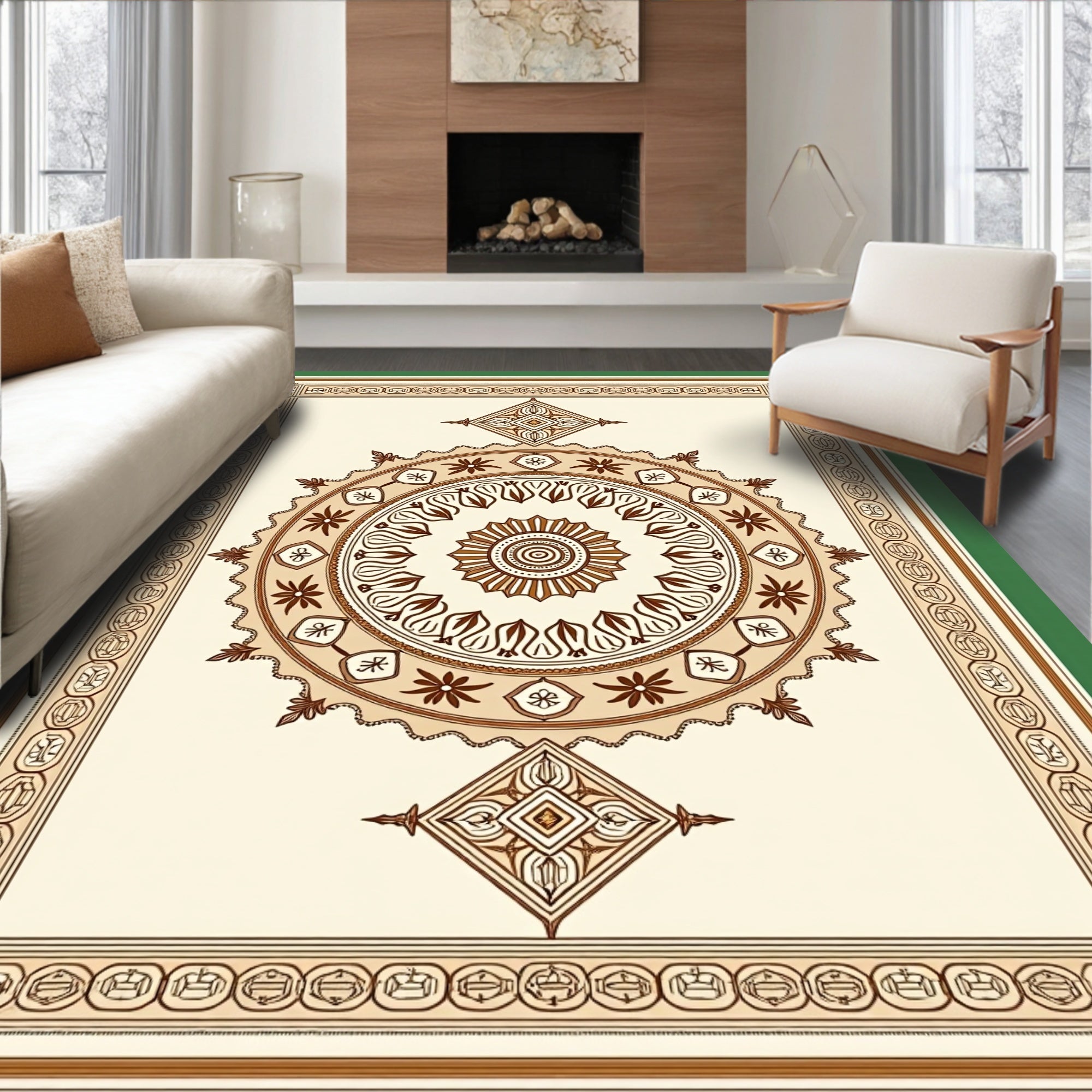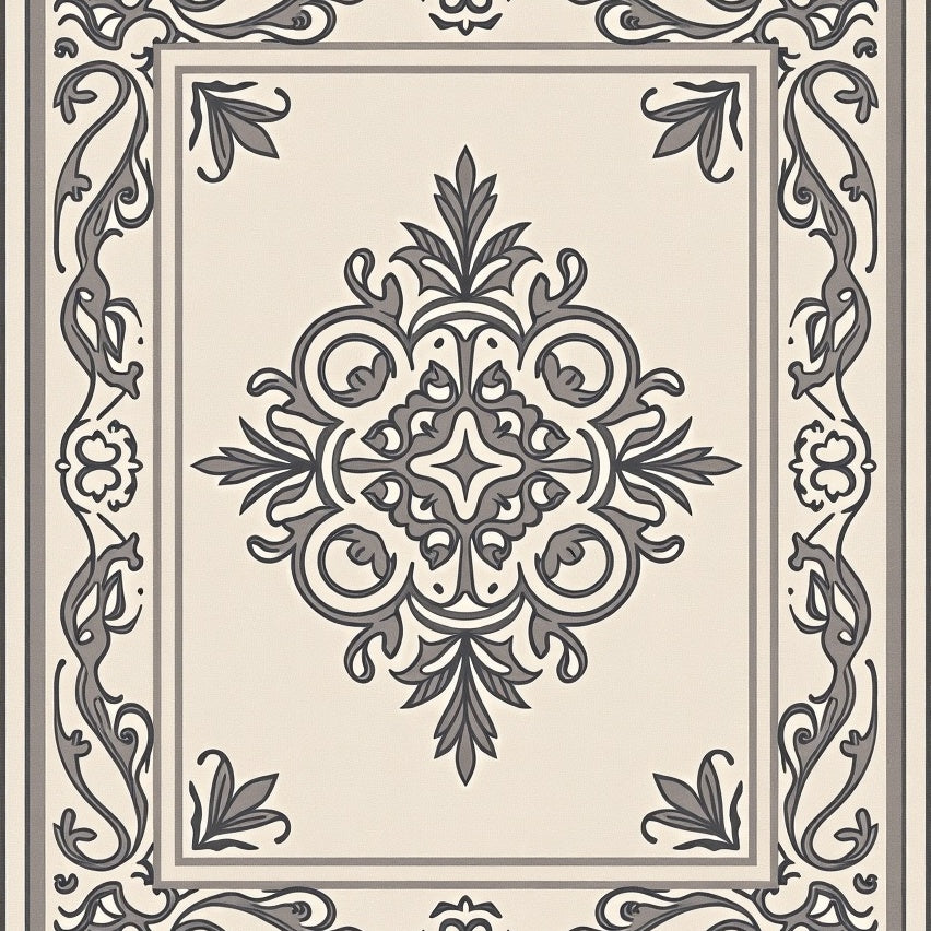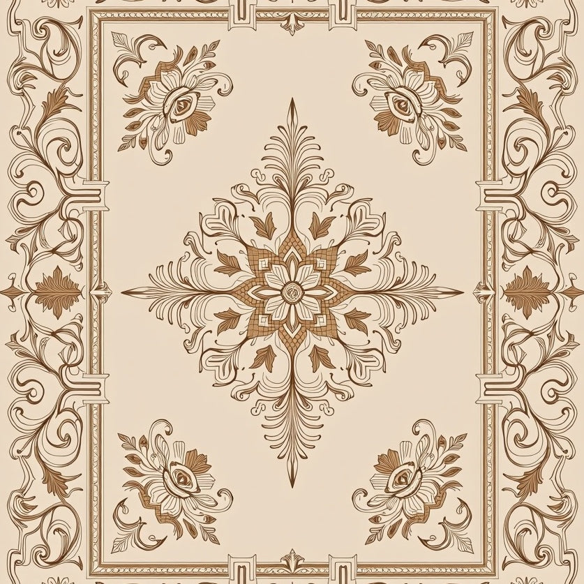 Traditional Medallion Artistry With Symmetrical Framework (Beige)
